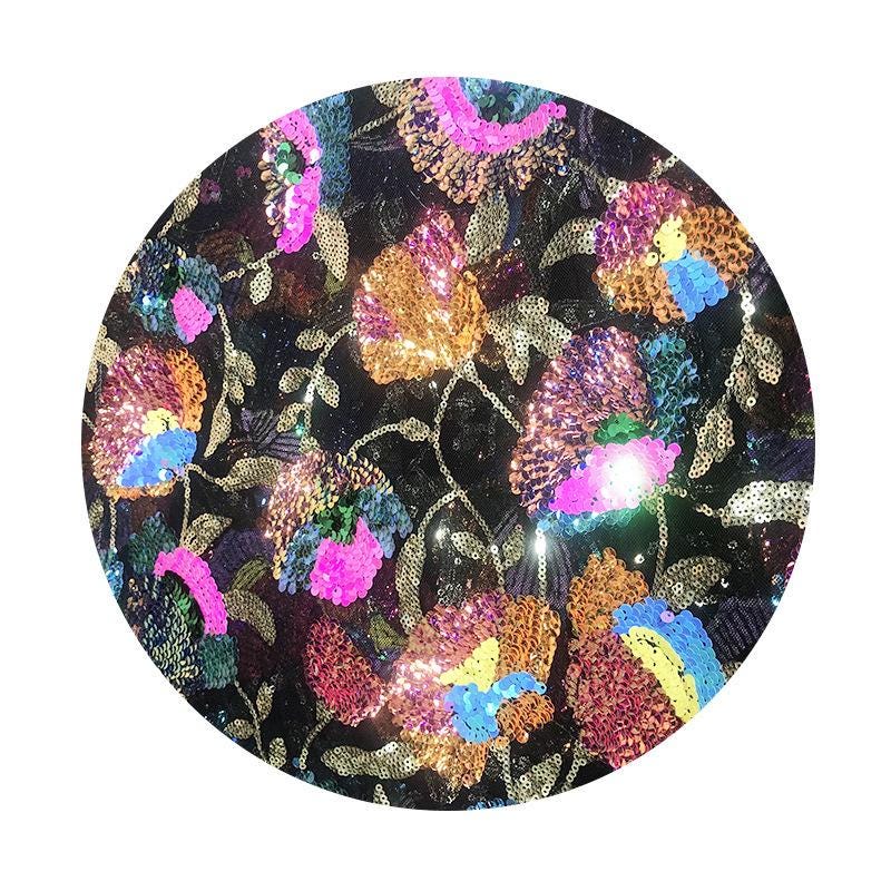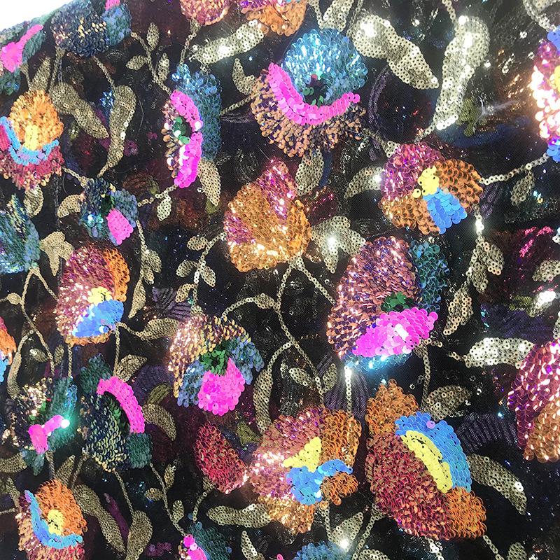 49"W Iridescent Sequin Floral Fabric ��� Colorful Big Flower Embroidery ��� Elegant Fashion Dress & G