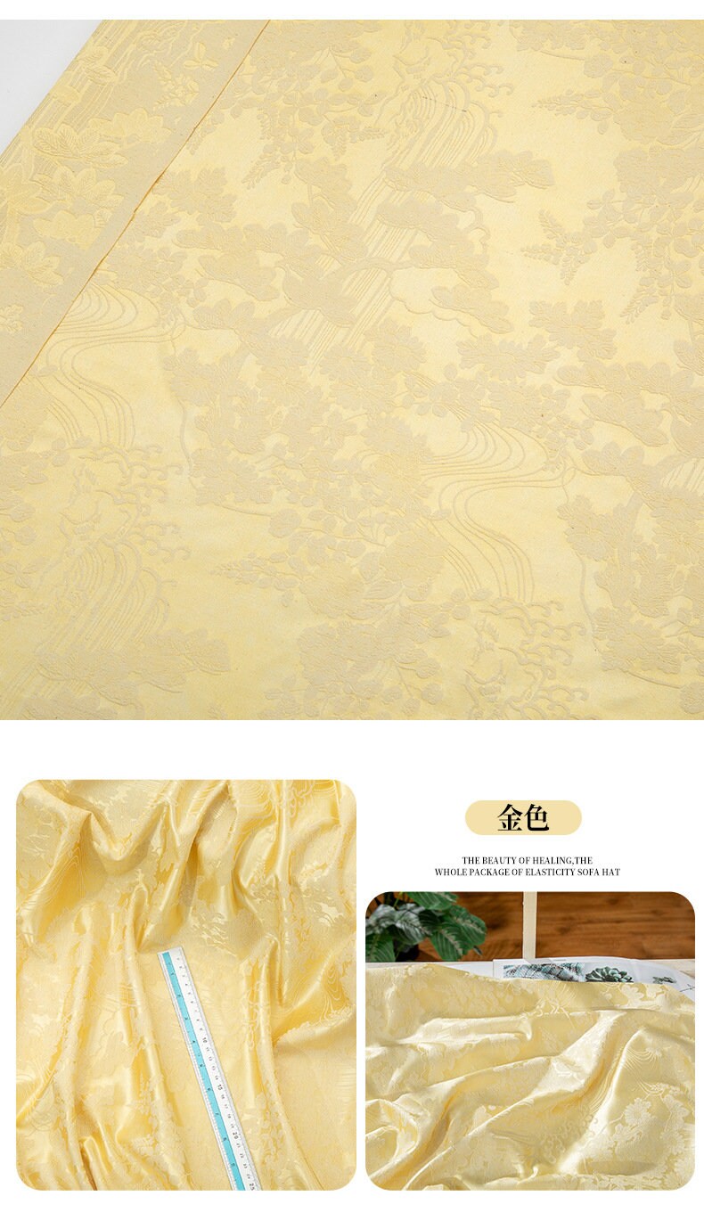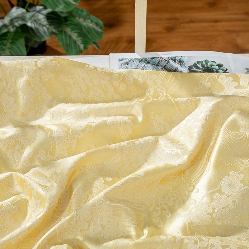 50 Momme Silk Damask Fabric: Handwoven Jacquard (59" Wide)