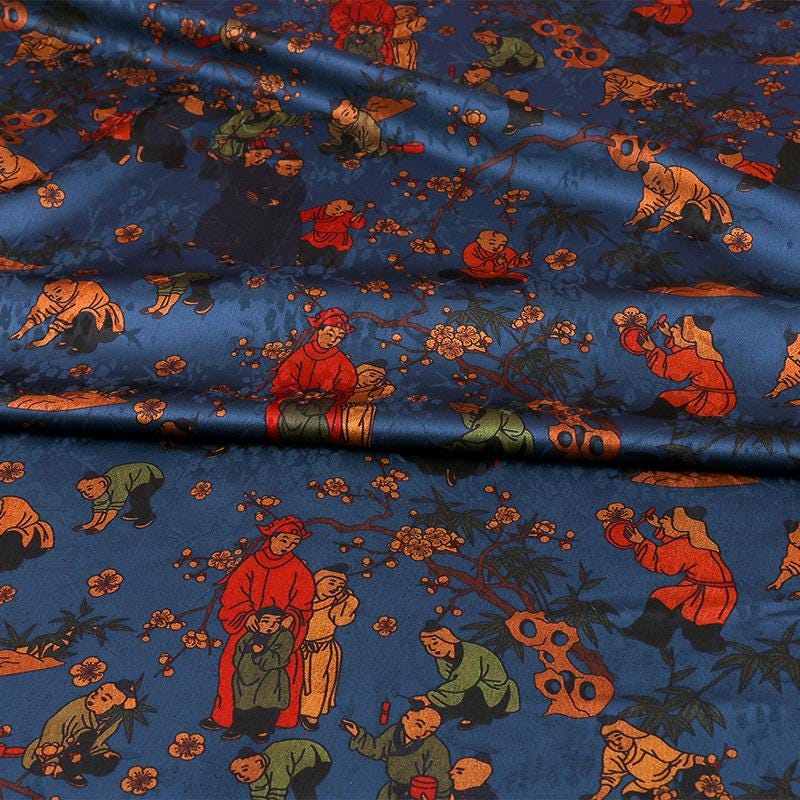 Ancient Painting Jacquard Fabric: Rayon Blend Cheongsam Dressmaking Material, 55" Wide