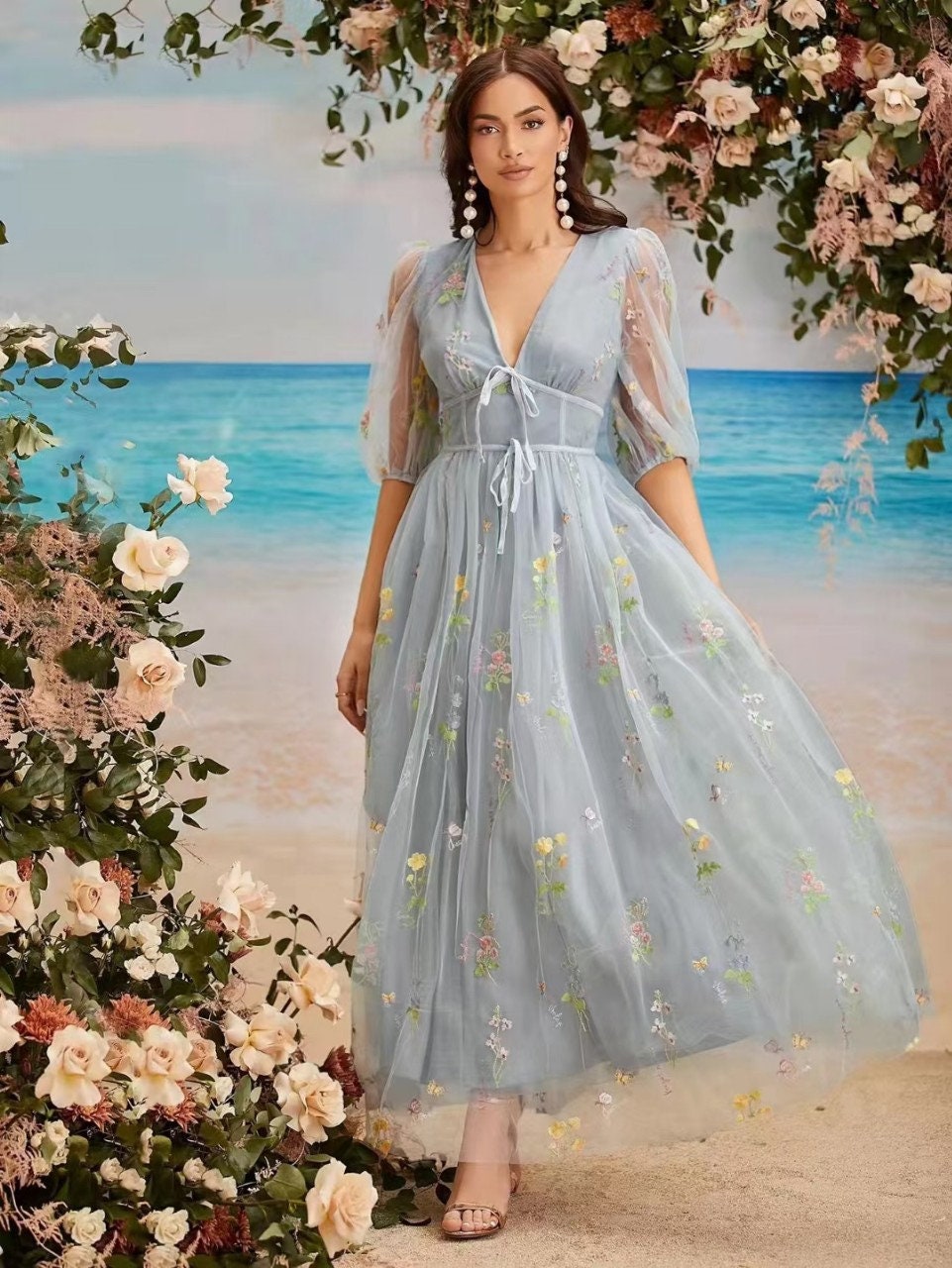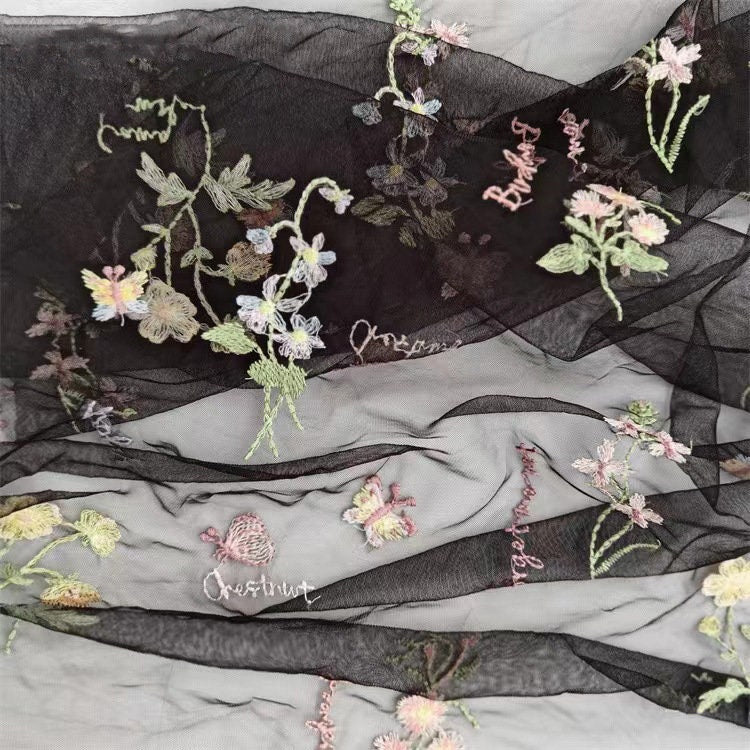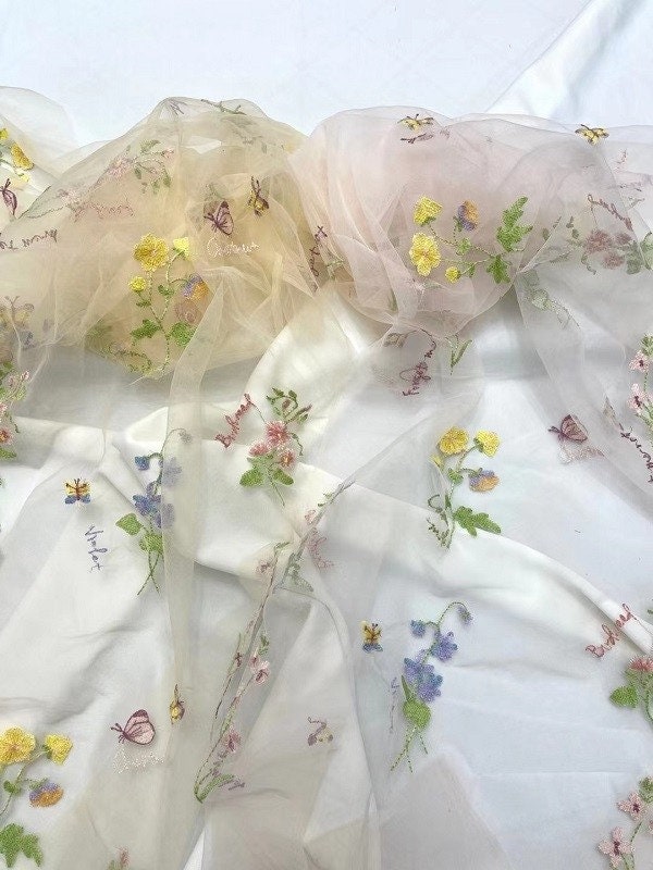 Embossed Flower Embroidery Fabric: 3D Silk Mesh, Costume & Decor