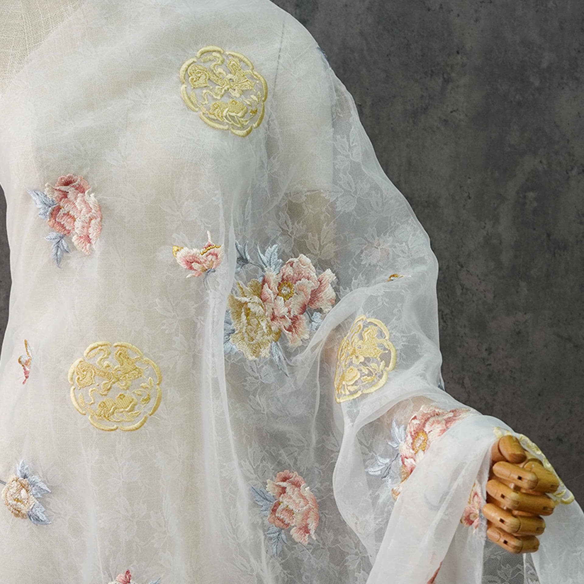 Embossed Flower Embroidery Organza Fabric: 3D Silk, Costume & Decor