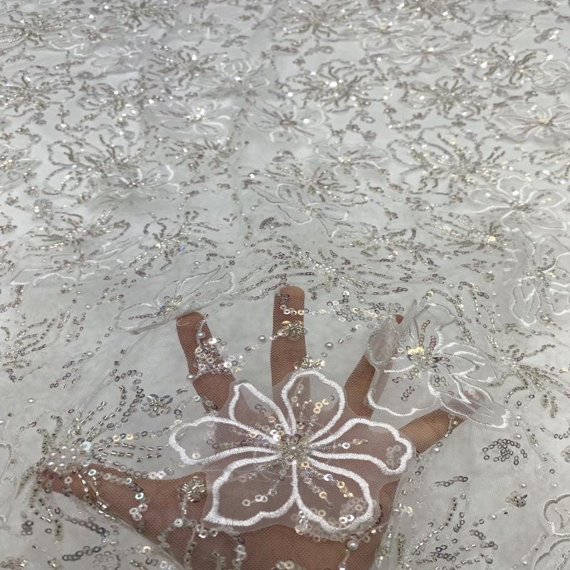 Floral Appliqu�� Lace Fabric: Beaded Sequin Embroidery, Bridal Dress Mate