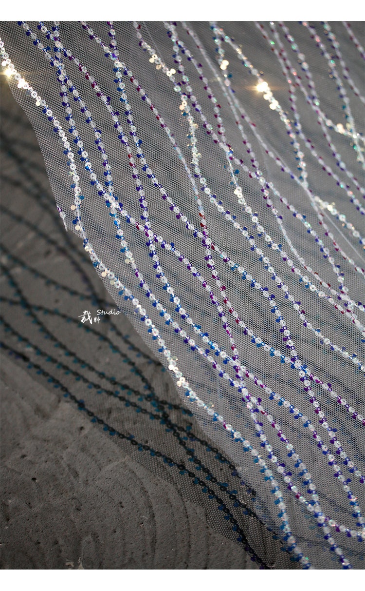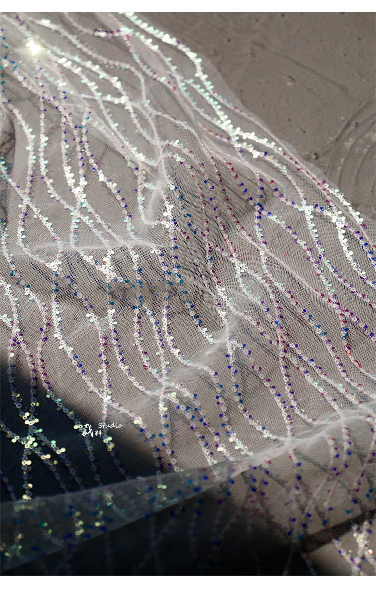 Mermaid Wave Mesh Fabric, Sequin Fish Scale Embroidery, 59" Wide