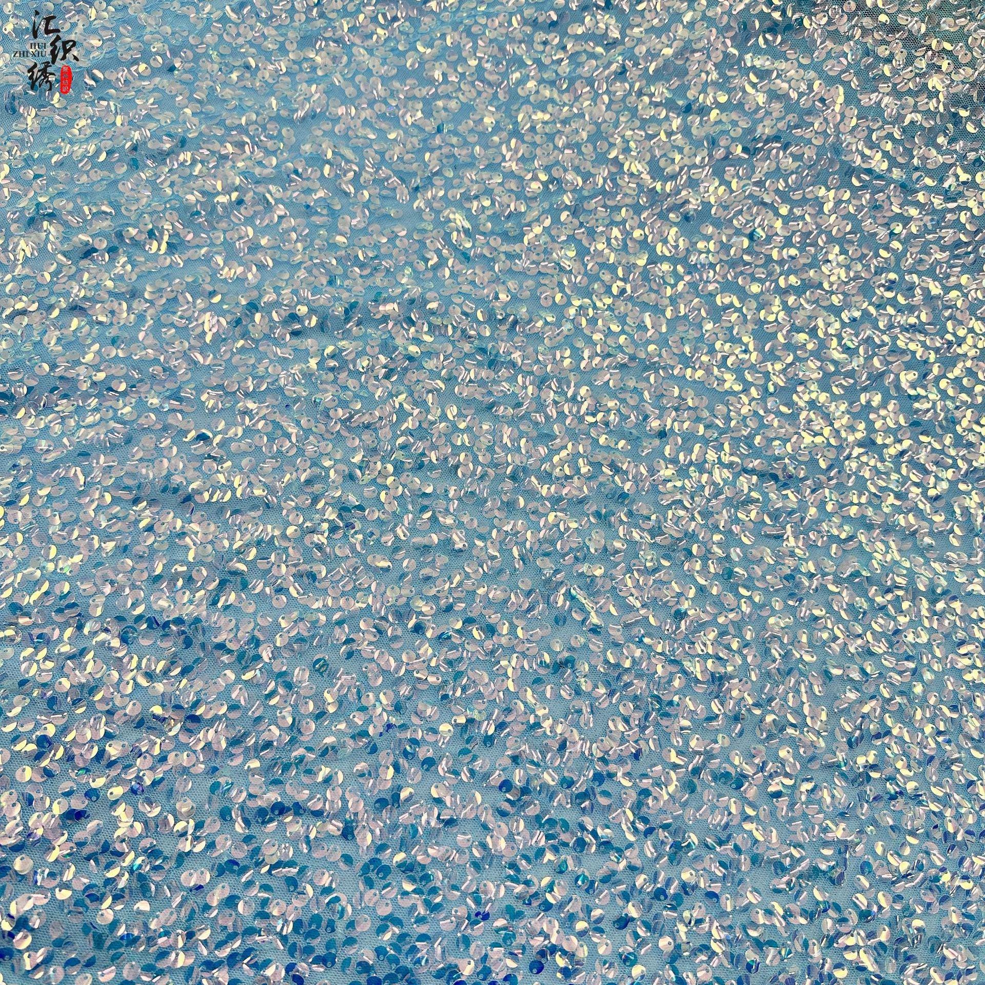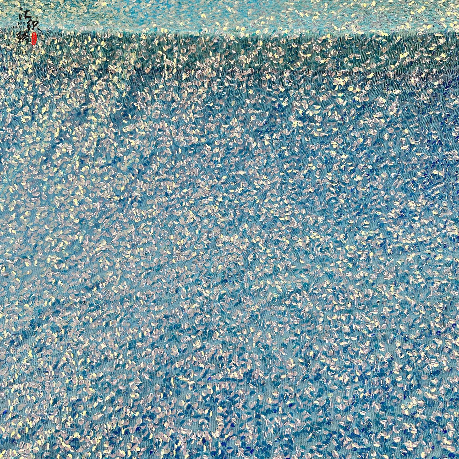 Sequin Embroidery Mesh Fabric, Full-Width Curved Beadwork, Costume Design by Yard