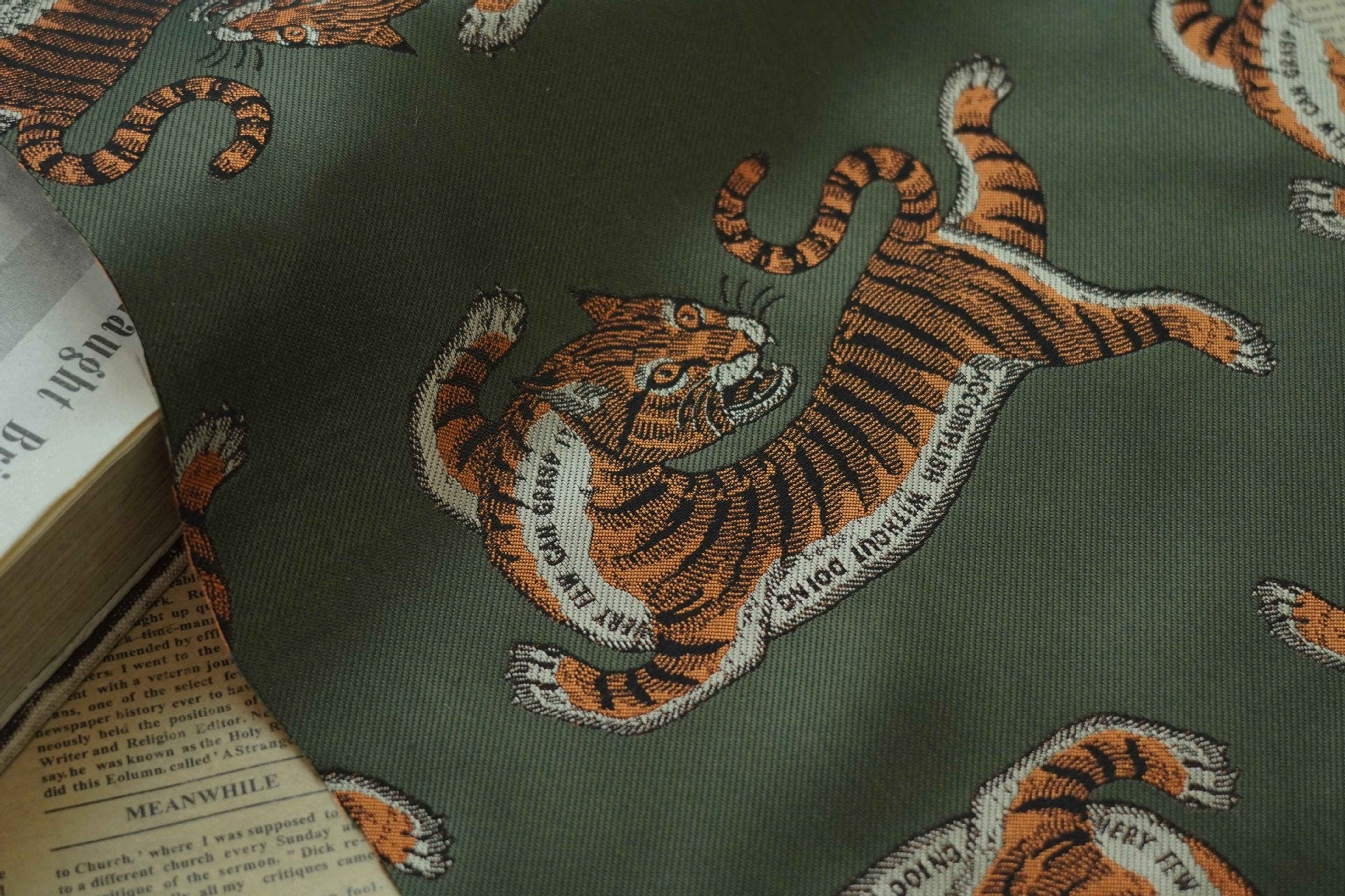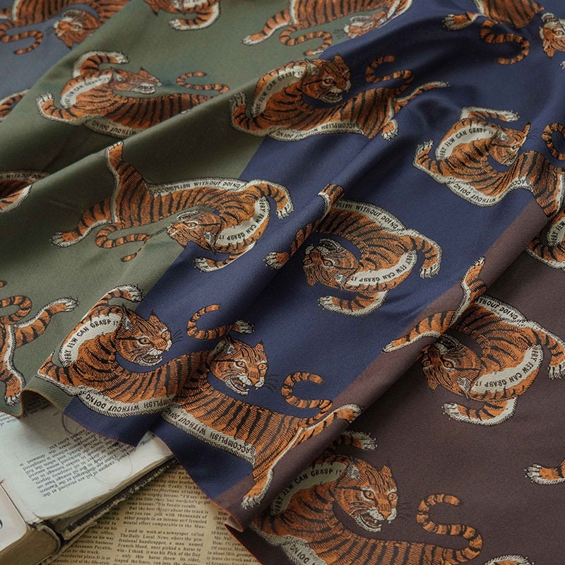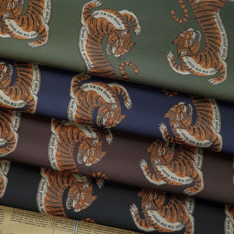 Tiger Jacquard Fabric: Cartoon Style Polyester Drapery, Upholstery - 59"W