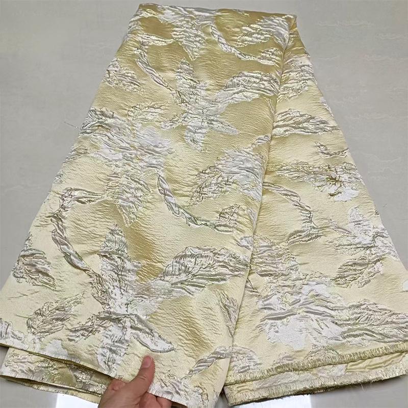 Yellow 3D Embossed Floral Jacquard Metallic Gold Luxury Fabric ��� Textured Brocade for Dress, Home Decor & Craf"Wide