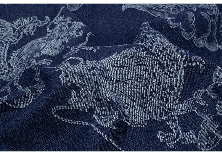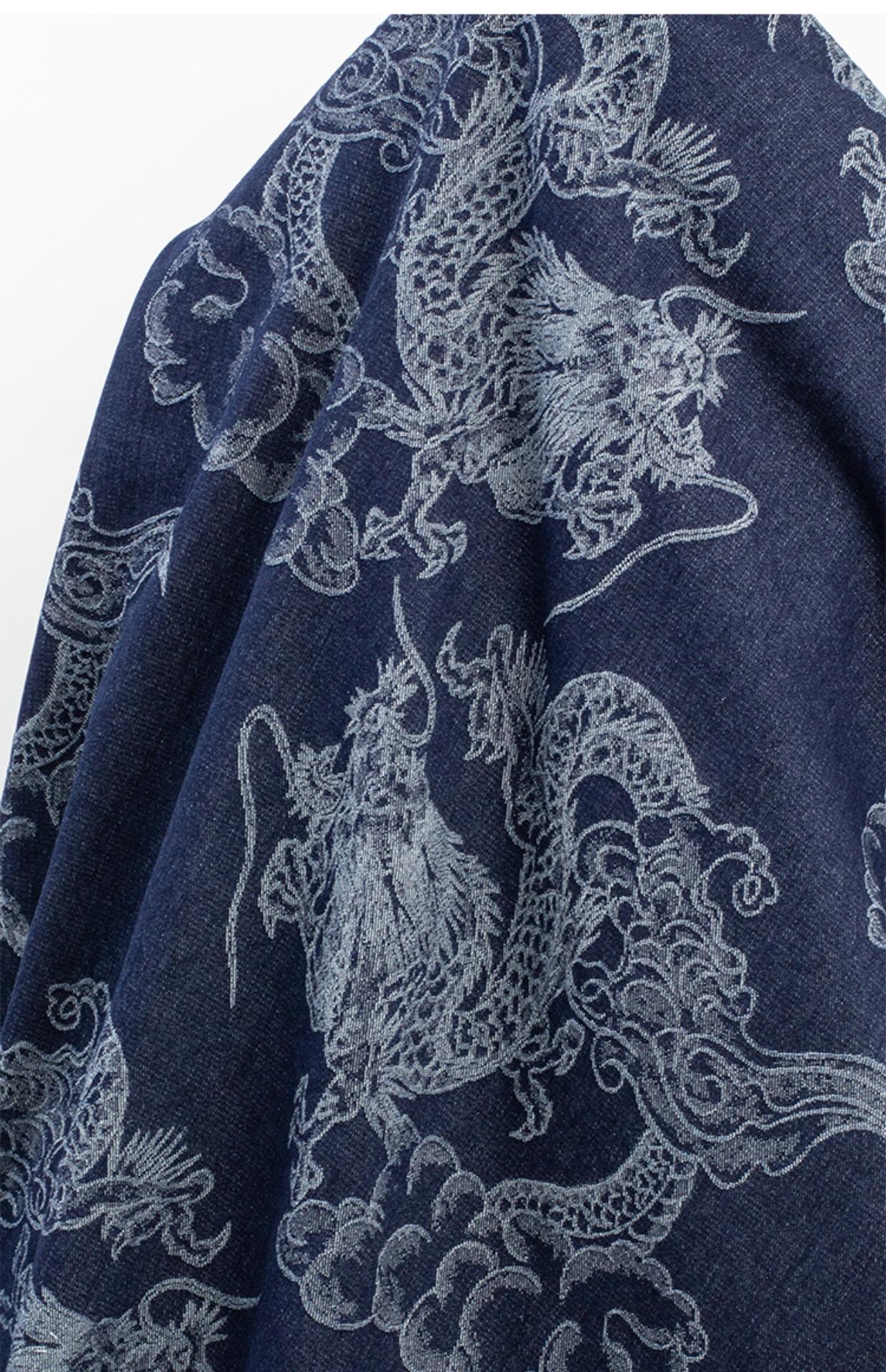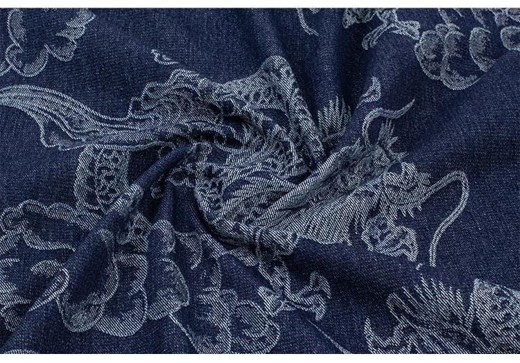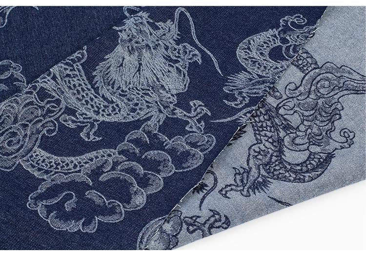 Tissu denim jacquard 3D Dragon : 100 % coton, ameublement, couture (165 cm)