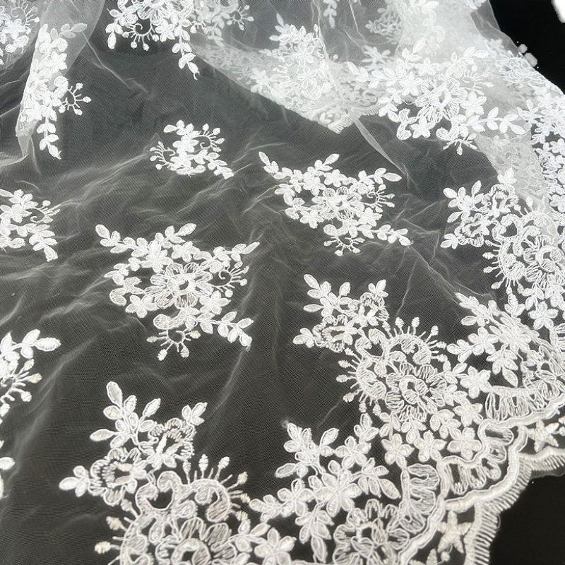 Tissu en dentelle brodée de fleurs 3D - 150 cm de large - Idéal pour une qipao de mariage