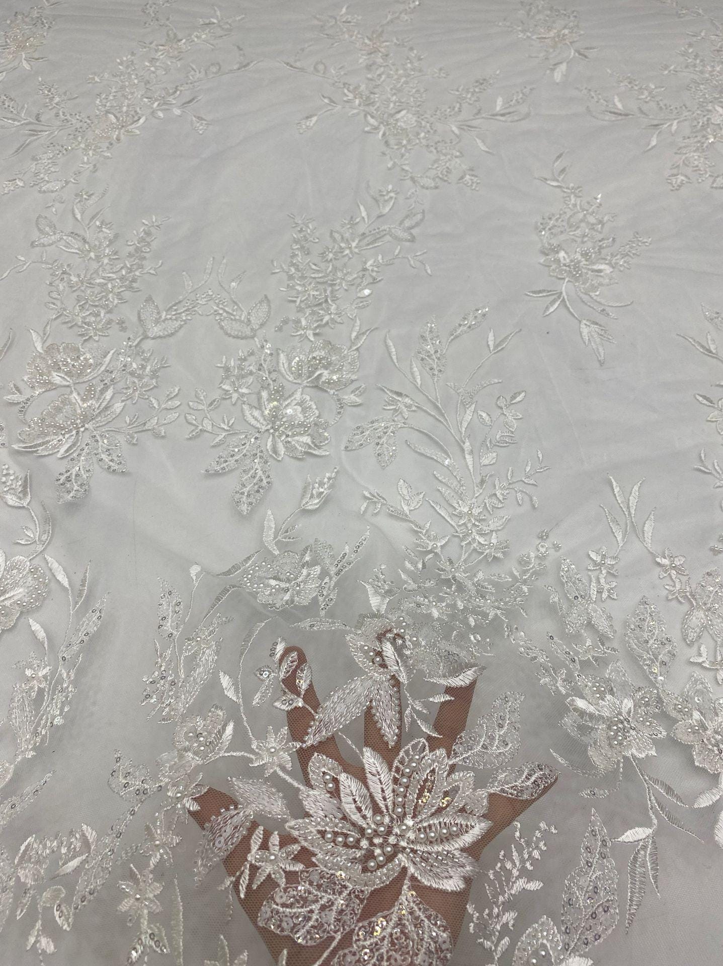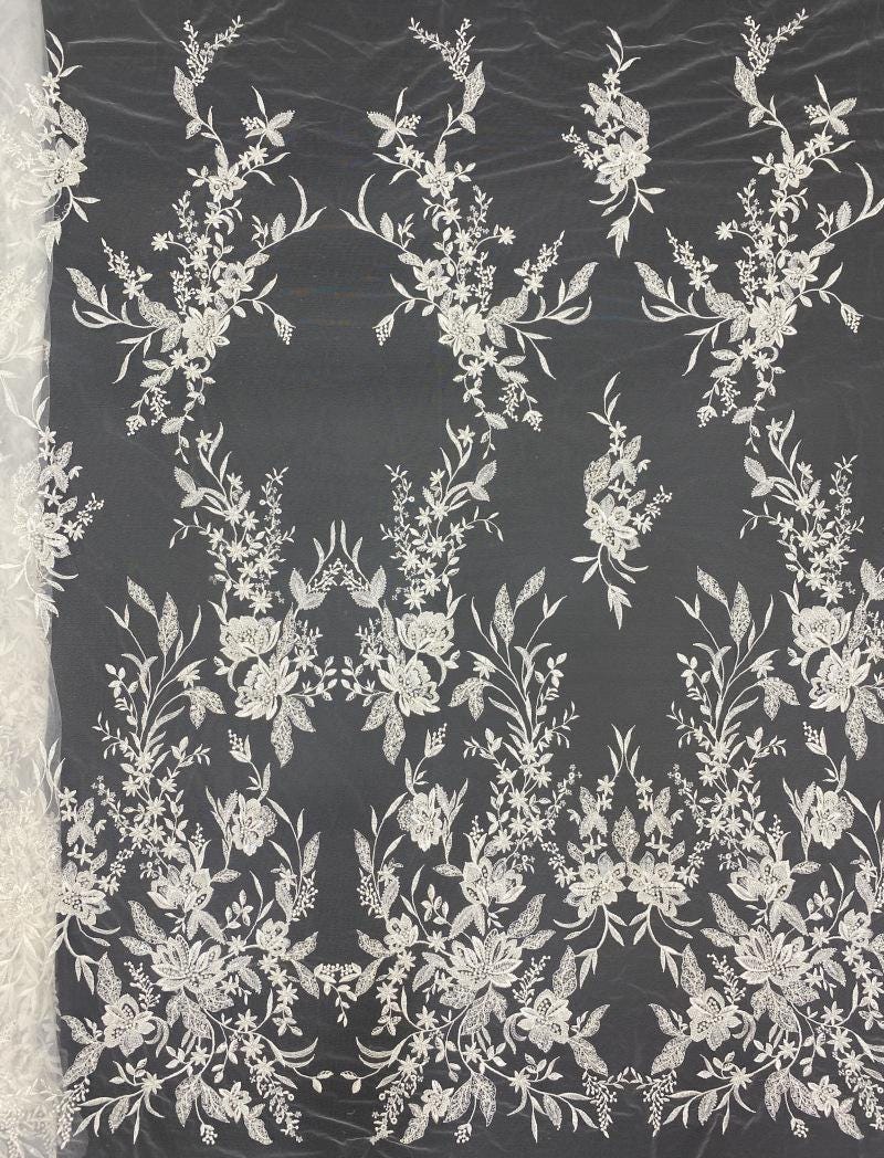 Tissu à sequins brodé de fleurs : rayonne de 124 cm de large pour la confection de vêtements