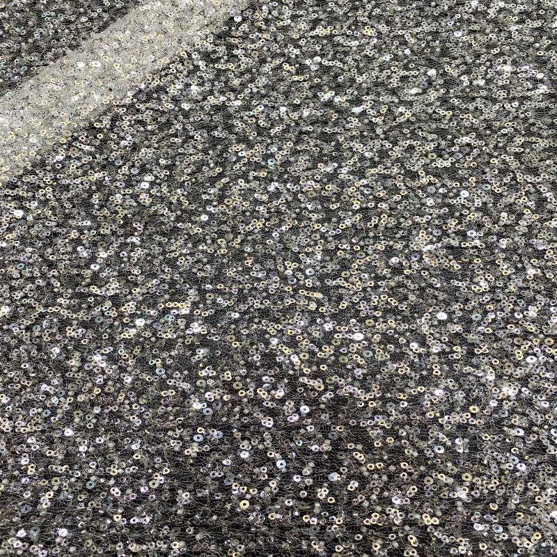 Chaque paillette est enfilée à la main, et le tissu est de haute qualité et texturé.