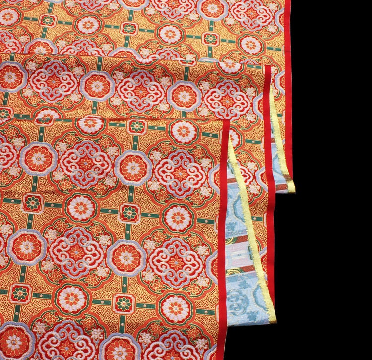 Brocart tibétain : broderie lotus, 147 cm de large, satin de rayonne