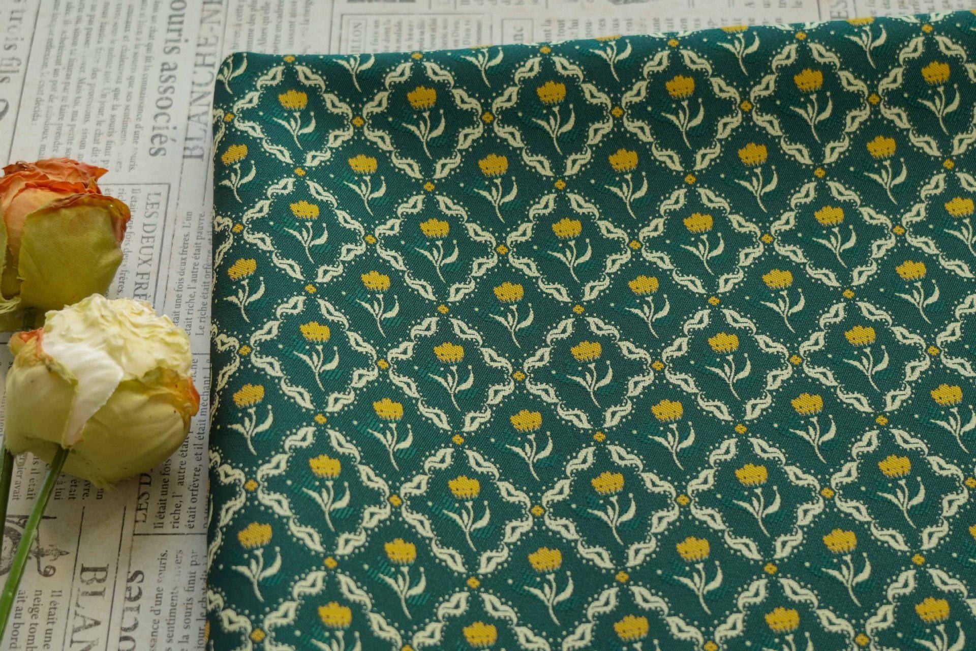 Tissu jacquard tulipe tissé : textile vintage double face, 160 cm de large