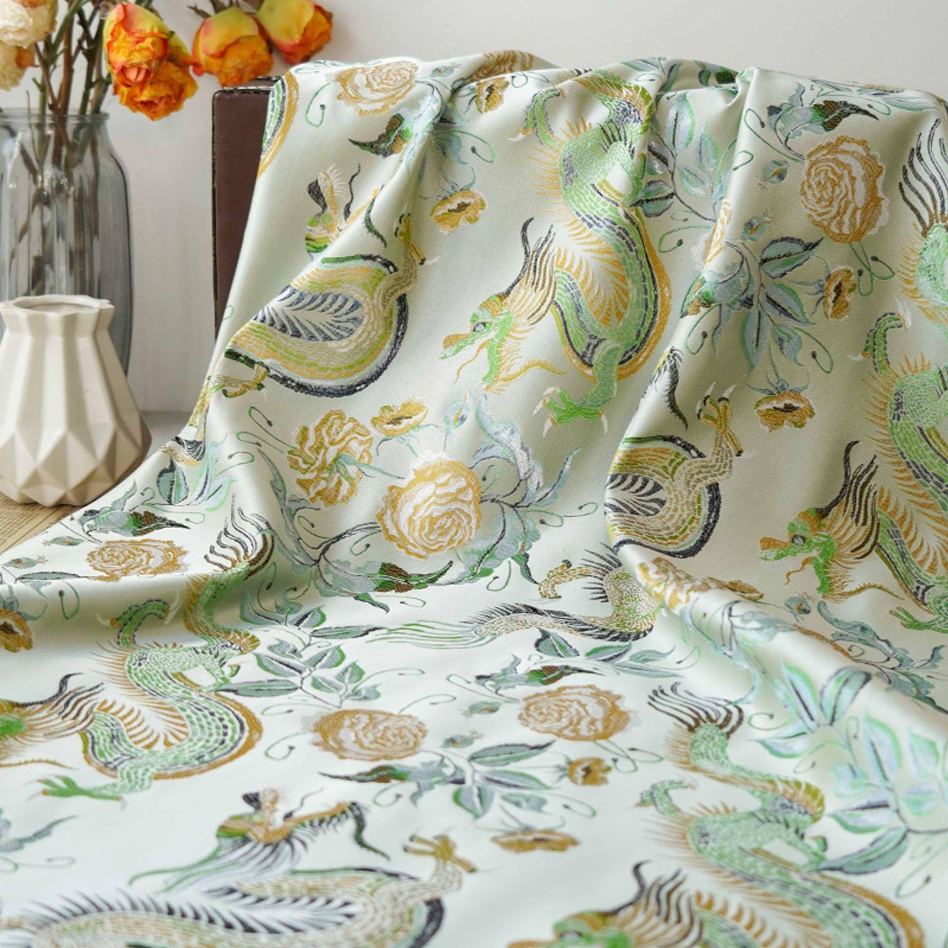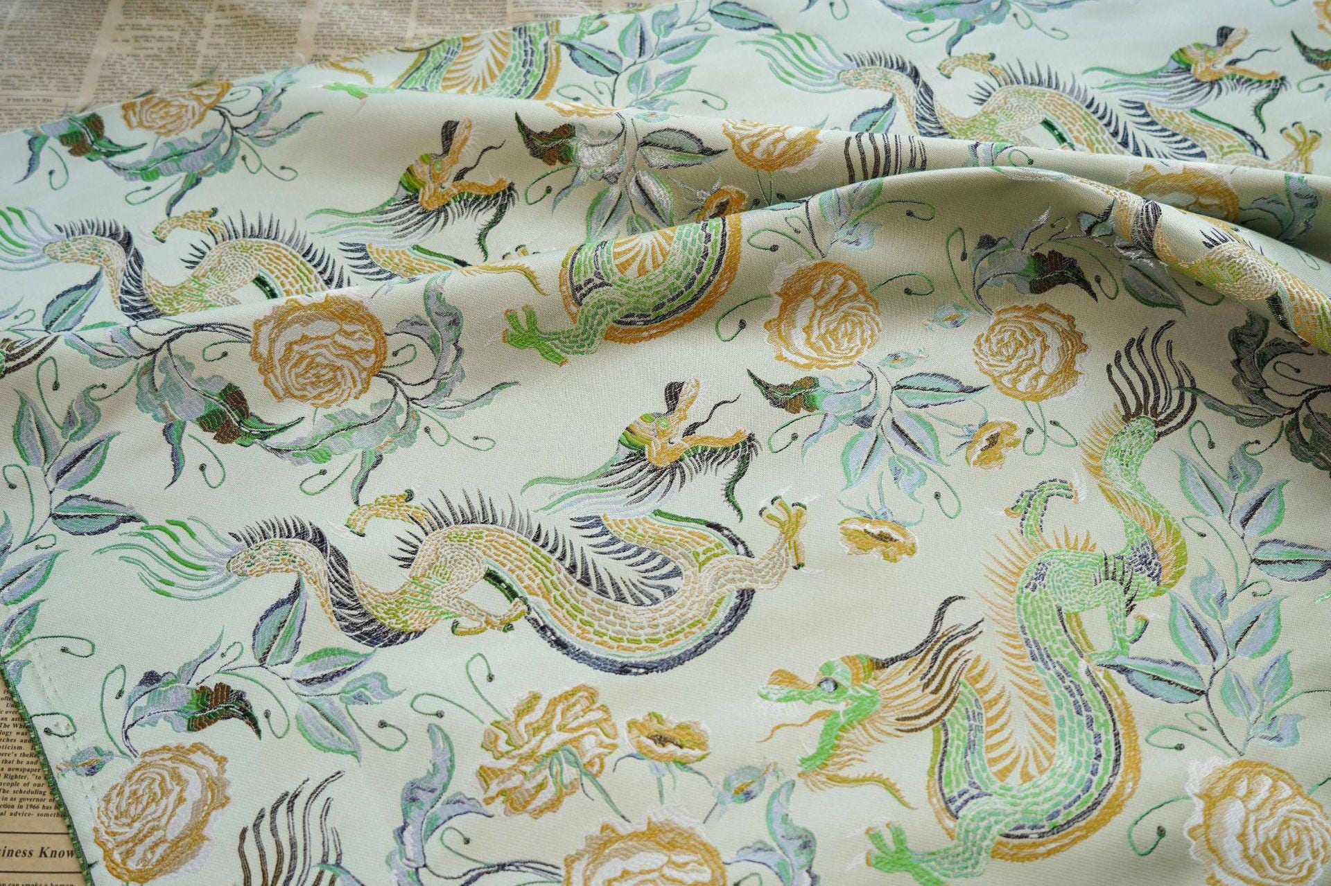 Tissu jacquard Turquoise Dragon : ameublement gaufré, costume, décoration (165 cm de large)