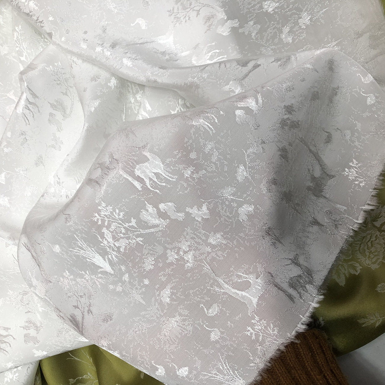Tissu jacquard à motif cerf blanc : style chinois antique, 150 cm de large