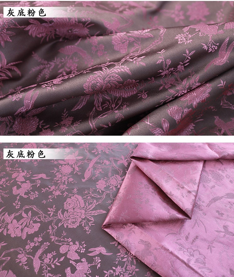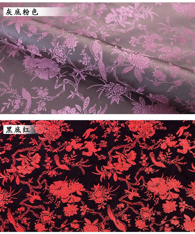 Tissu brocart Oiseaux sauvages et Azalées : Tissu pour coussin Cheongsam Qipao (largeur 59")