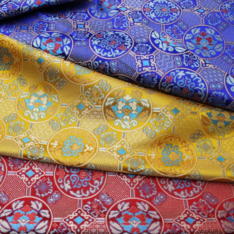 Tissu brocart floral en rayonne Xiangyun - Largeur : 75 cm