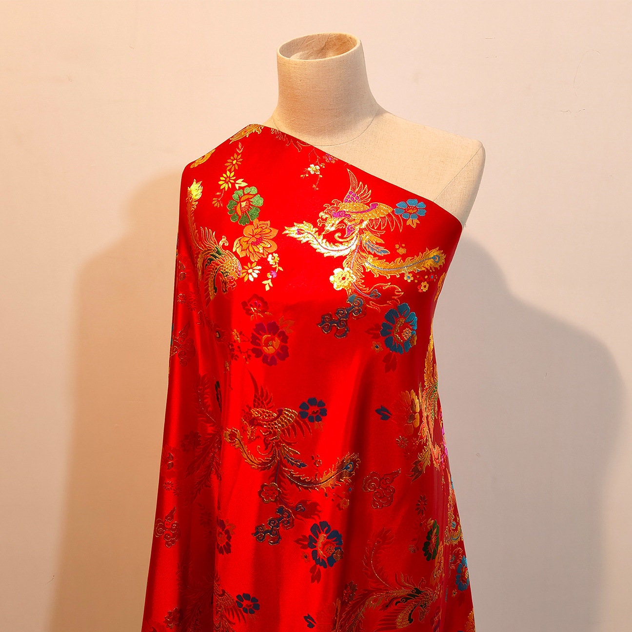 29.5"W Birds Fabric, A hundred birds are paying homage to a phoenix pattern Jacquard Satin Fabric, Upholstery, Quilting and Sewing fabric