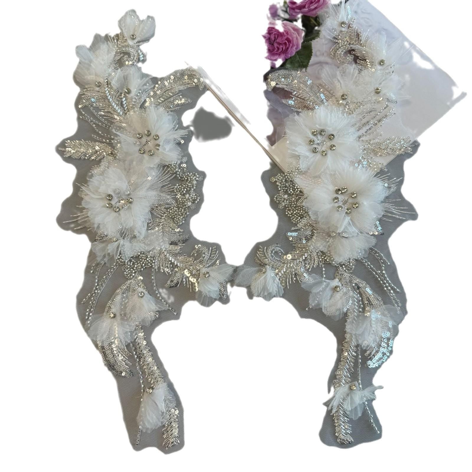 3D Floral Applique ��� Beaded Sequins Mesh Fabric, Wedding Lac