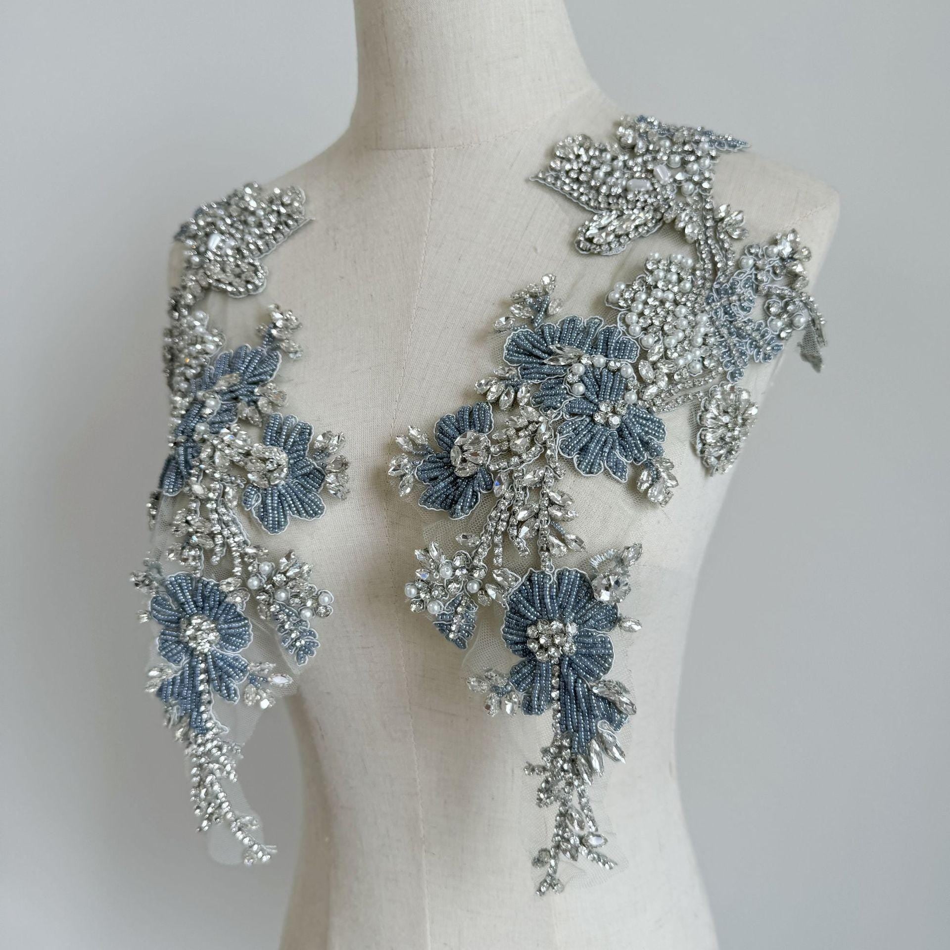 3D Floral Applique ��� Diamond Sequins, Mesh Embroidered Cloth St
