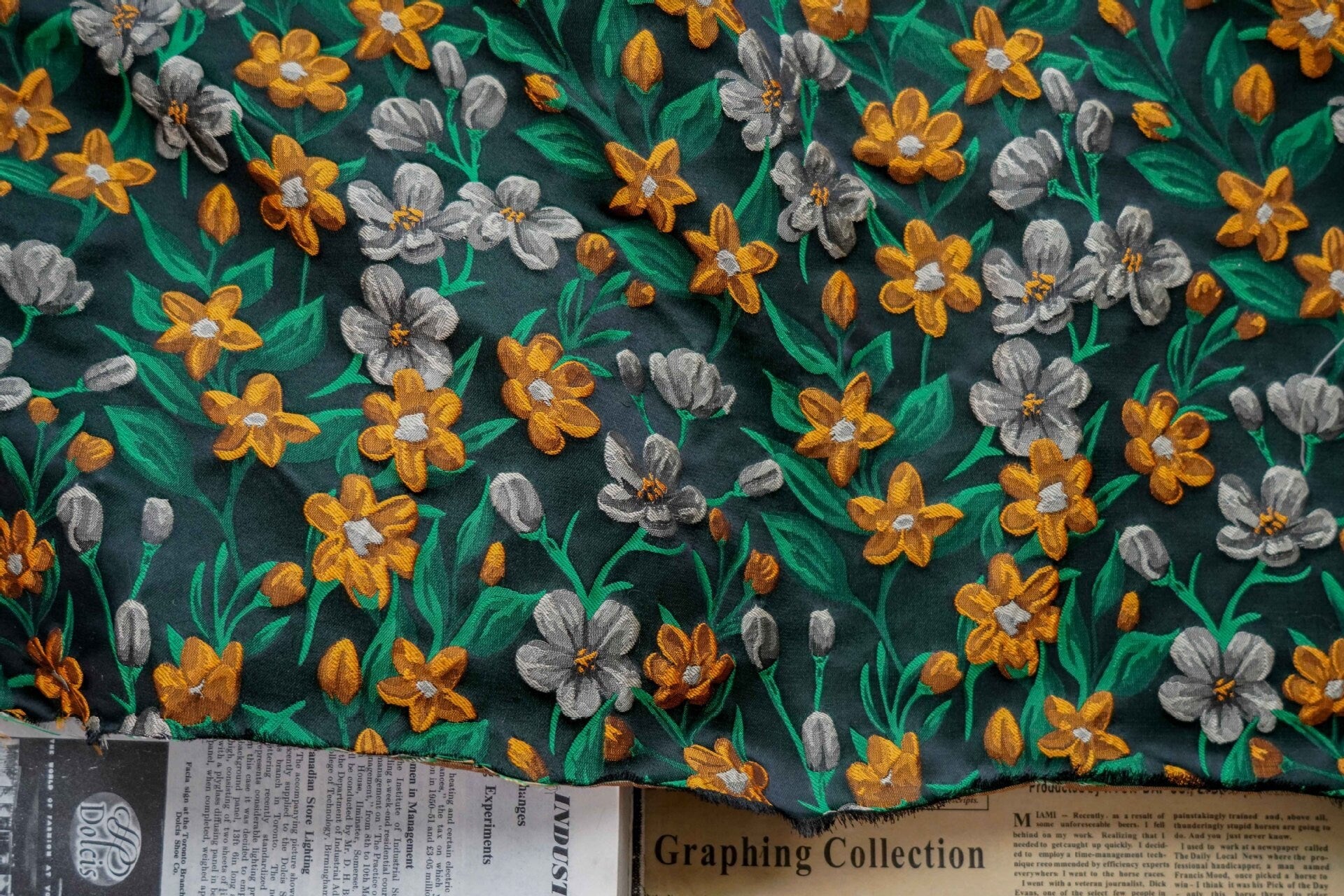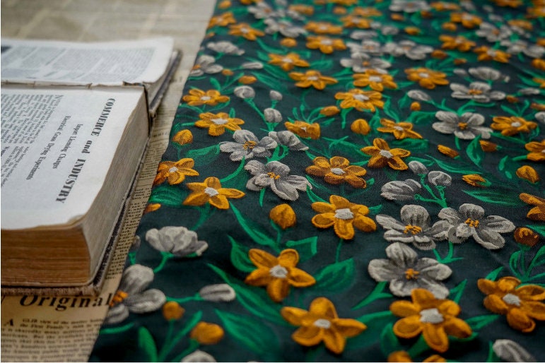 3D Floral Fabric: Yarn-Dyed Rayon Blend, 65" Wide
