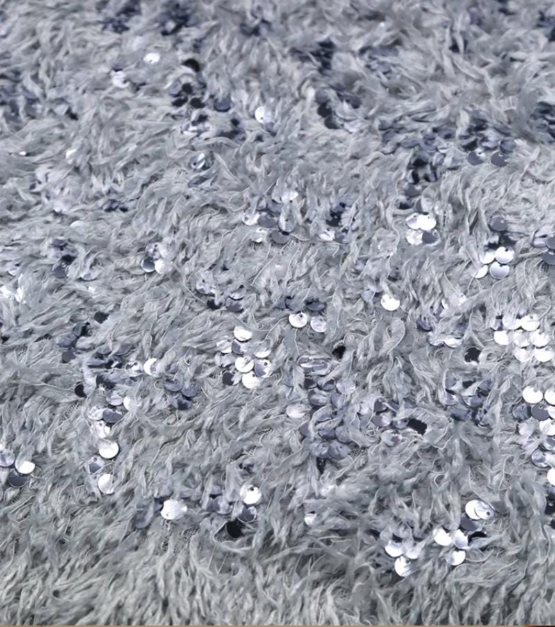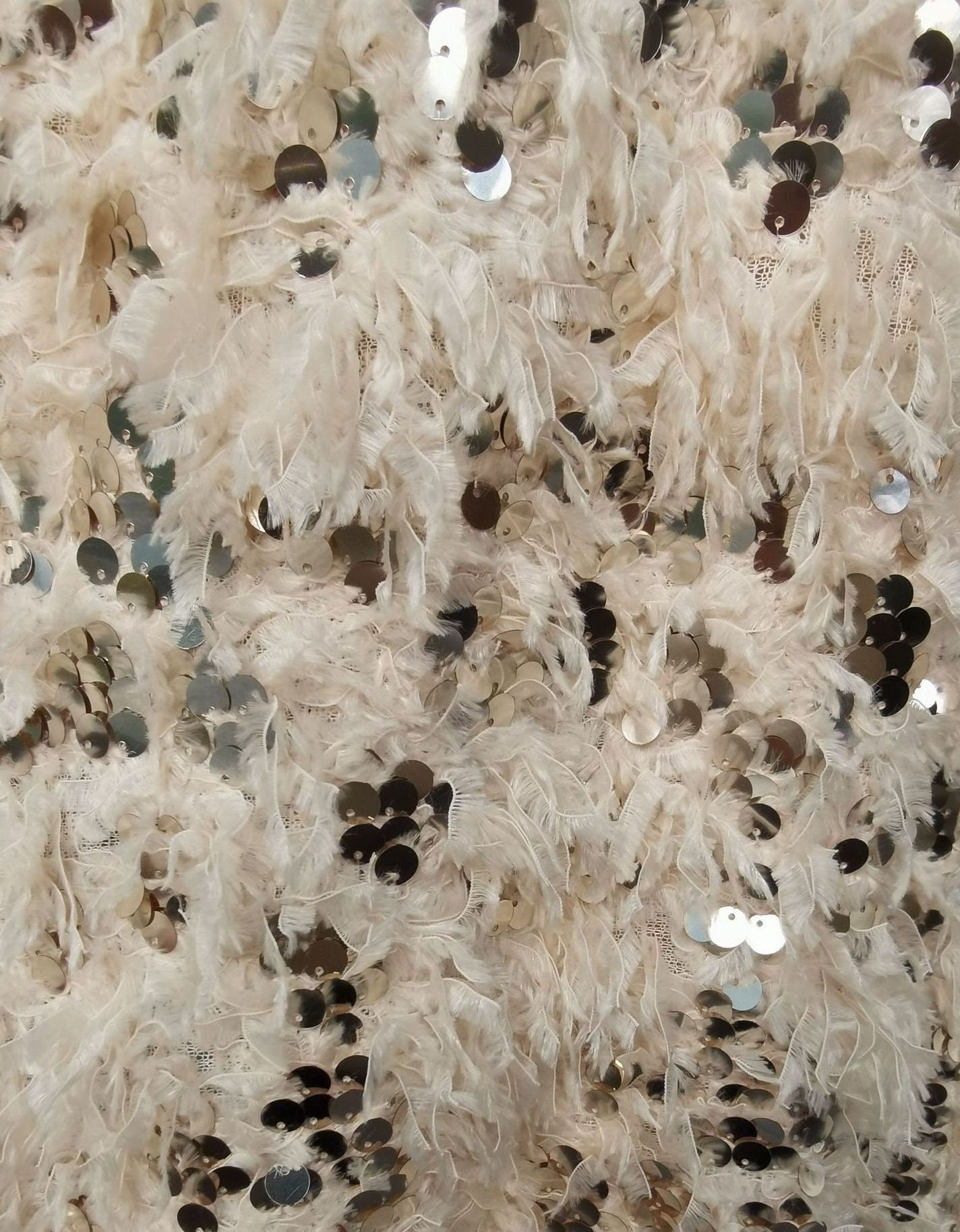 Beige Feather Sequin Embroidery Fabric: 49" Wide Costume Material