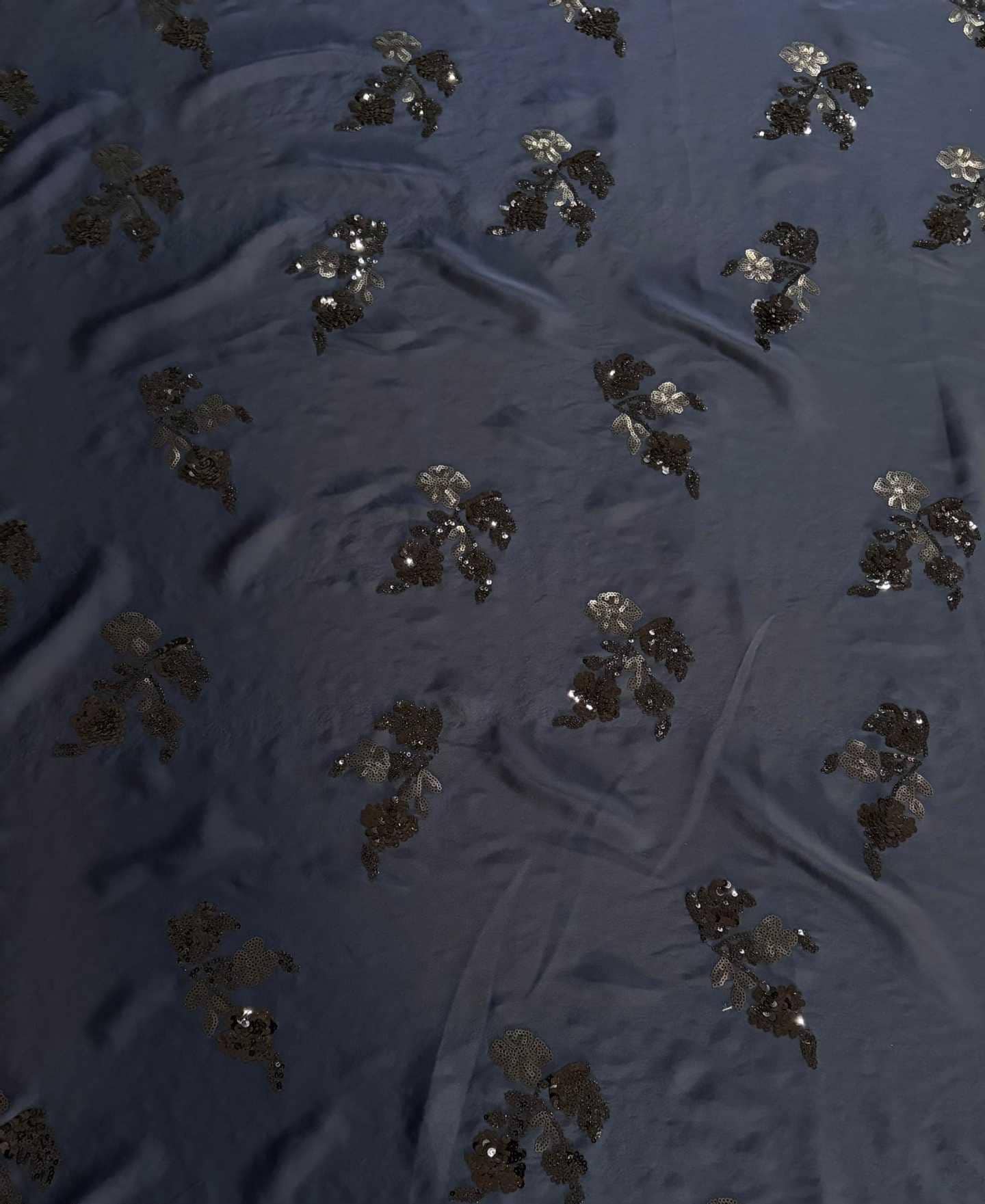 Black Satin Fabric with Gold Sequin Embroidery ��" Wide