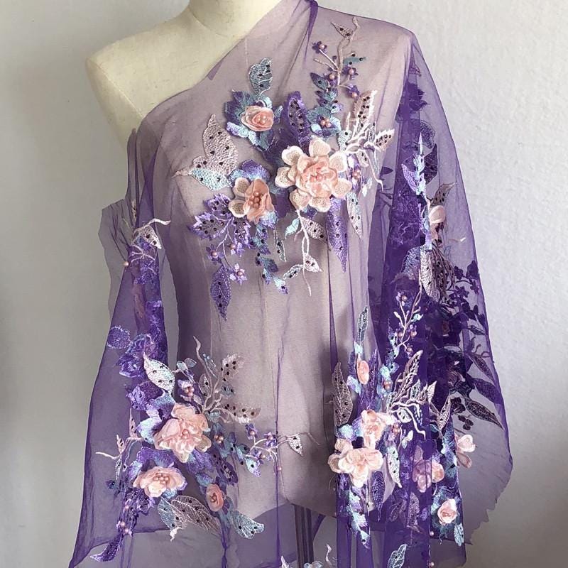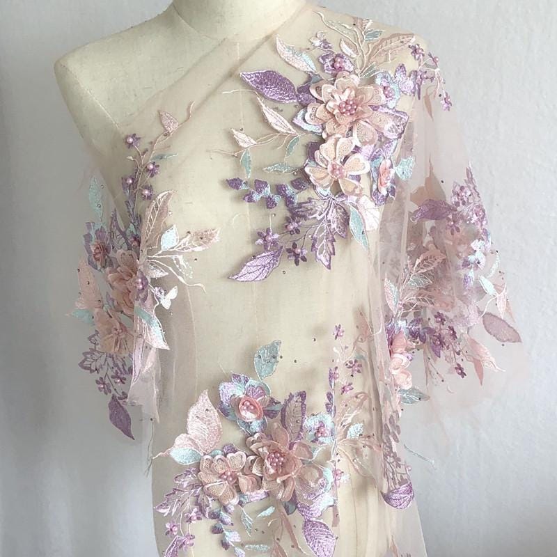 Colorful 3D Floral Beaded Embroidery Lace - Bridal Veil, Doll Making