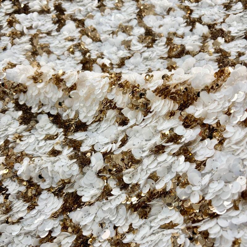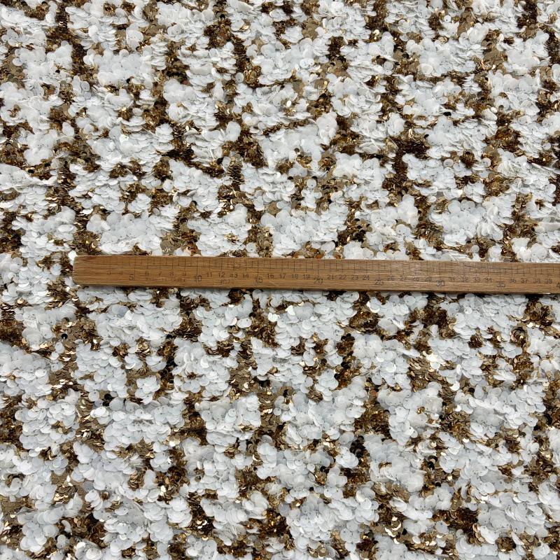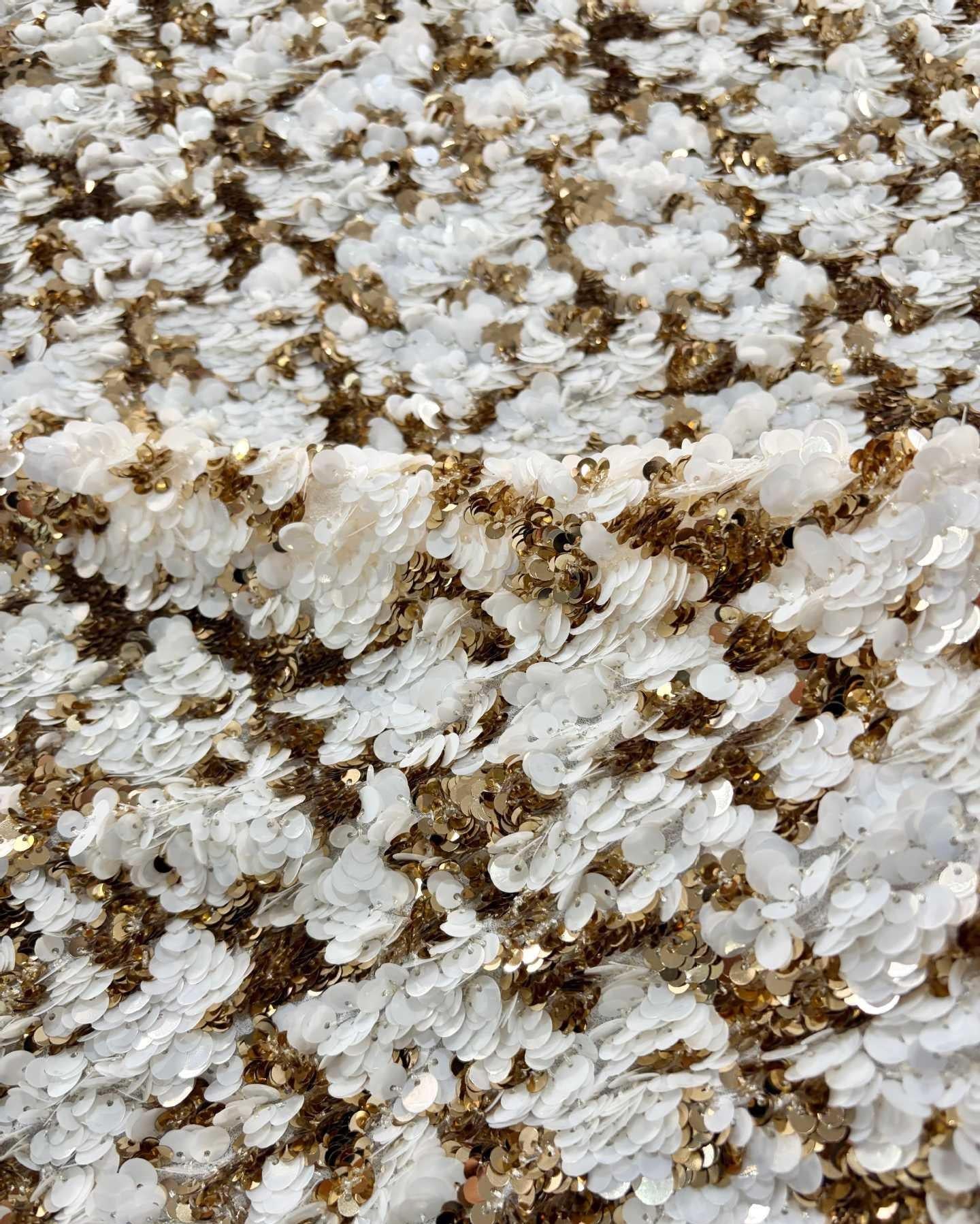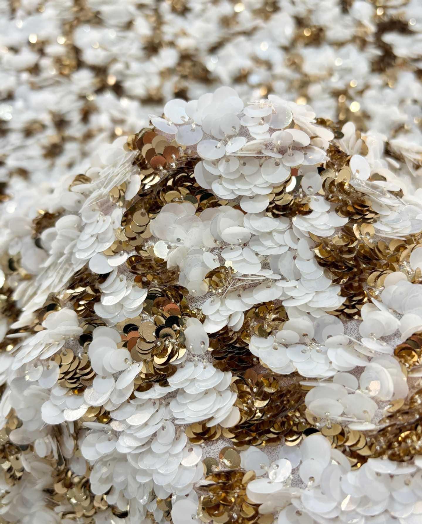 Cream Gold Sequin Layered Embroidered Chiffon Fabric ��� Wedding Dress & Gown Embroidery Materi"Wide