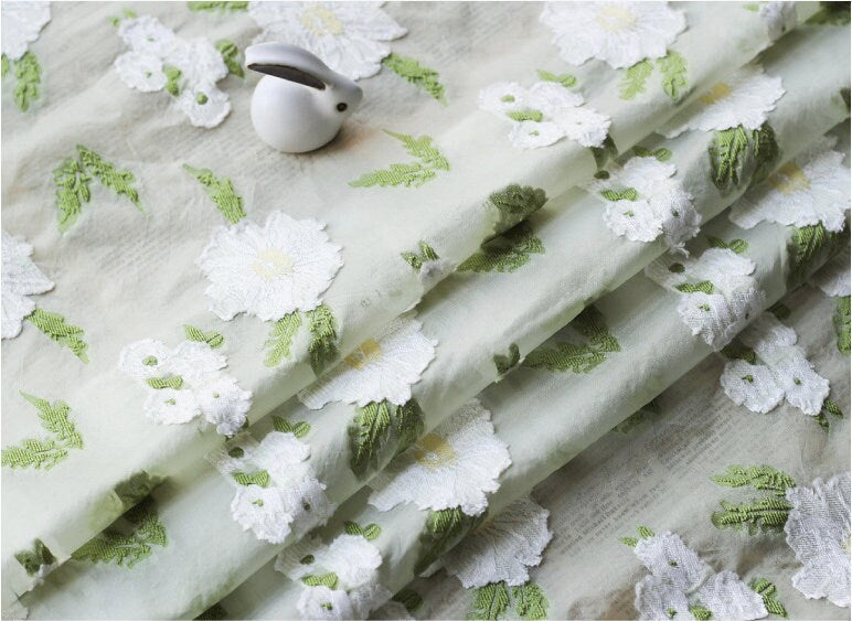 Embossed Flower Embroidery Fabric: 3D Silk Chiffon, 55"W, Costume & Decor