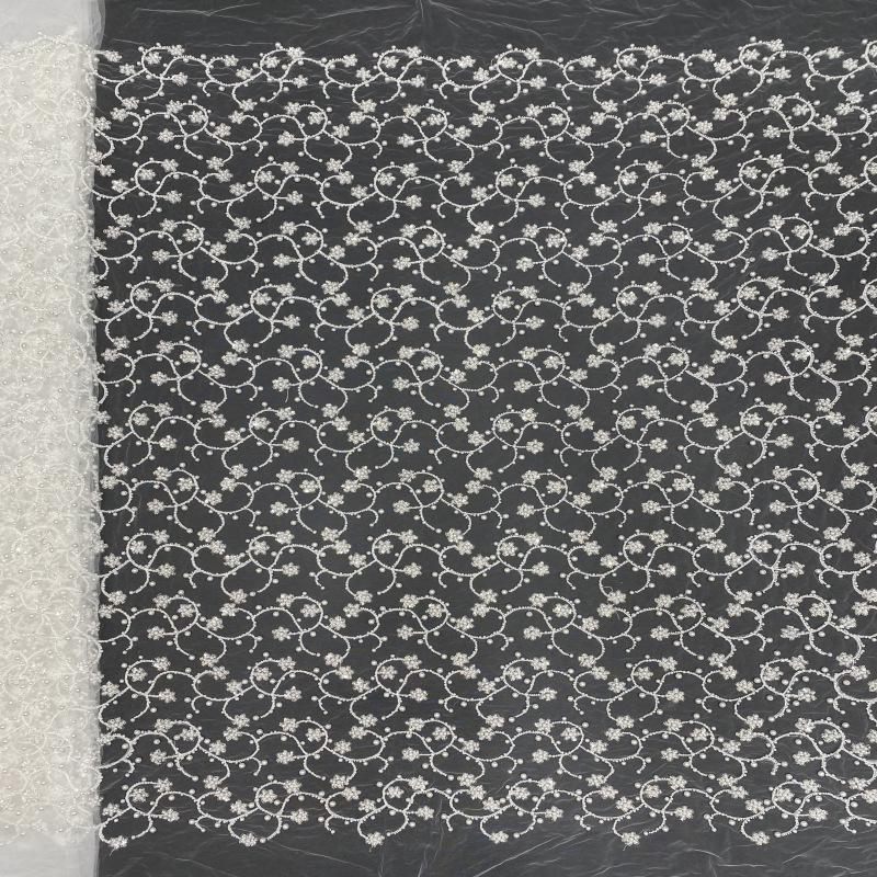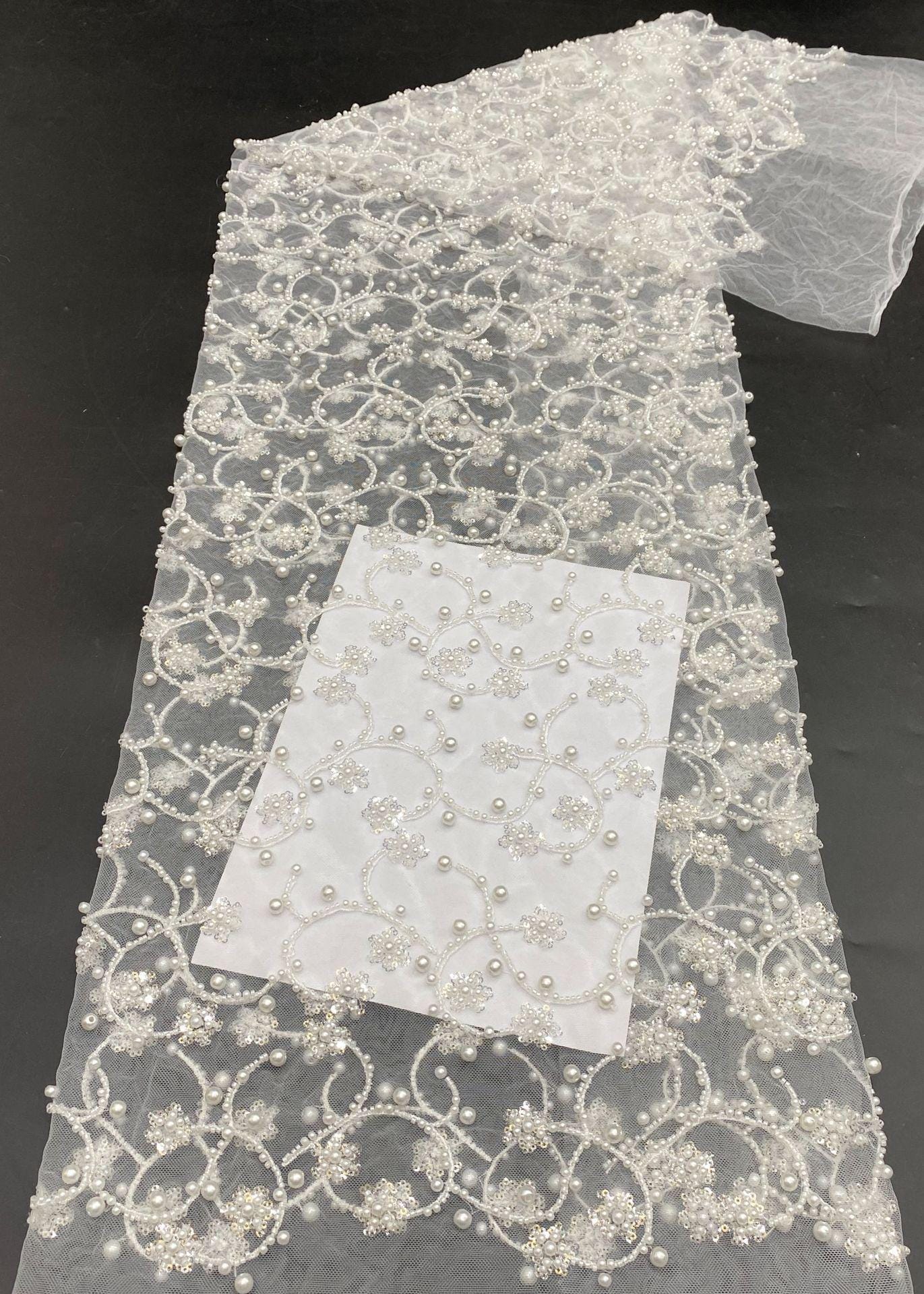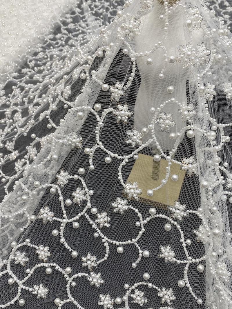 High-End Beaded & Sequin Fabric ��� 4/6/8mm Pearl Embroidery, Wedding Dress, Bridal Gown Material, Prom Dress, Luxury Fashion Fabr"Wide
