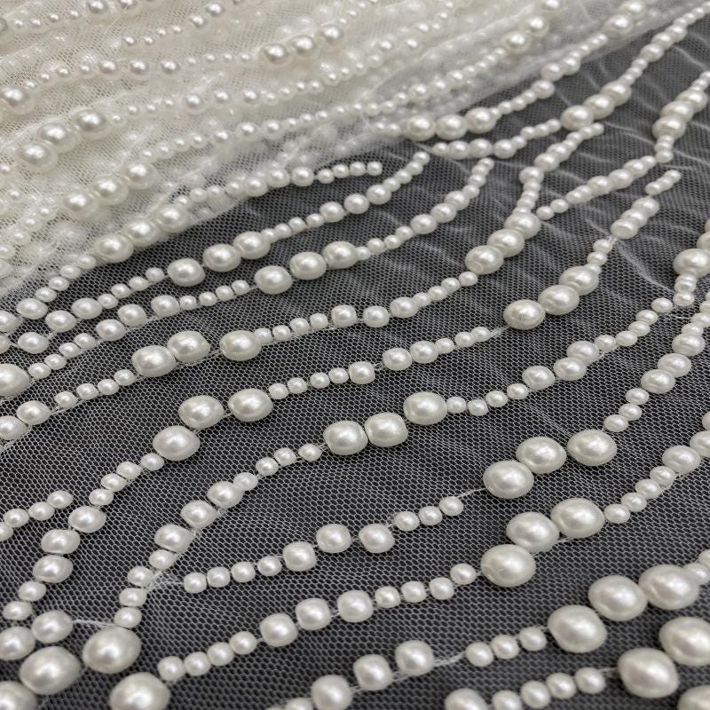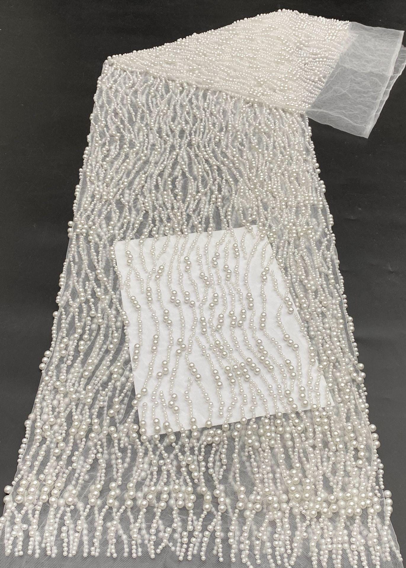 Luxury Wedding & Evening Dress Fabric ��� 4/6/8mm Pearl Beads, Sequin Embroidery, Bridal Gown Material, Couture Fabric for Sewi"Wide