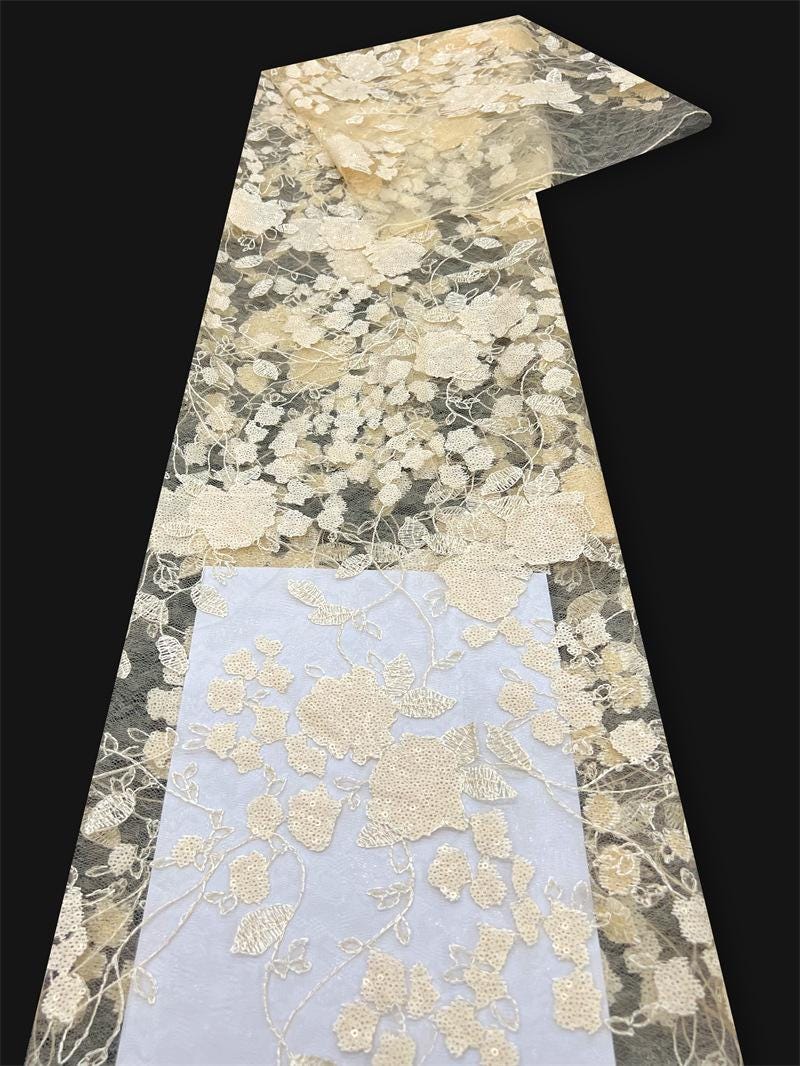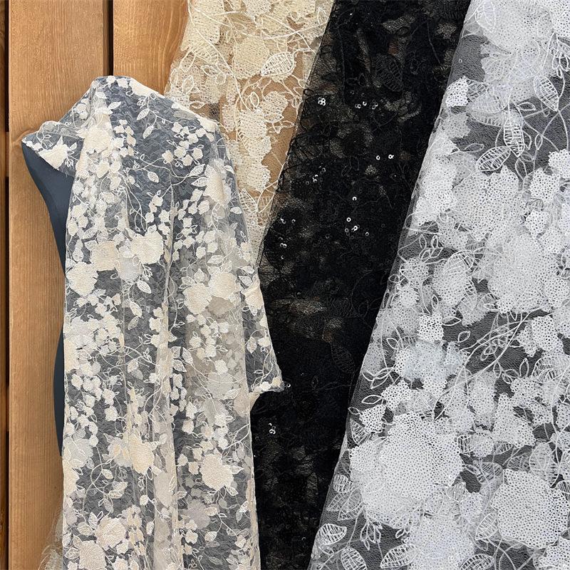 Peony Lace Tulle Fabric: Sequin Embroidery, DIY Wedding Gown Material