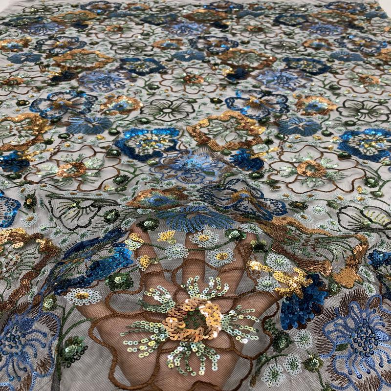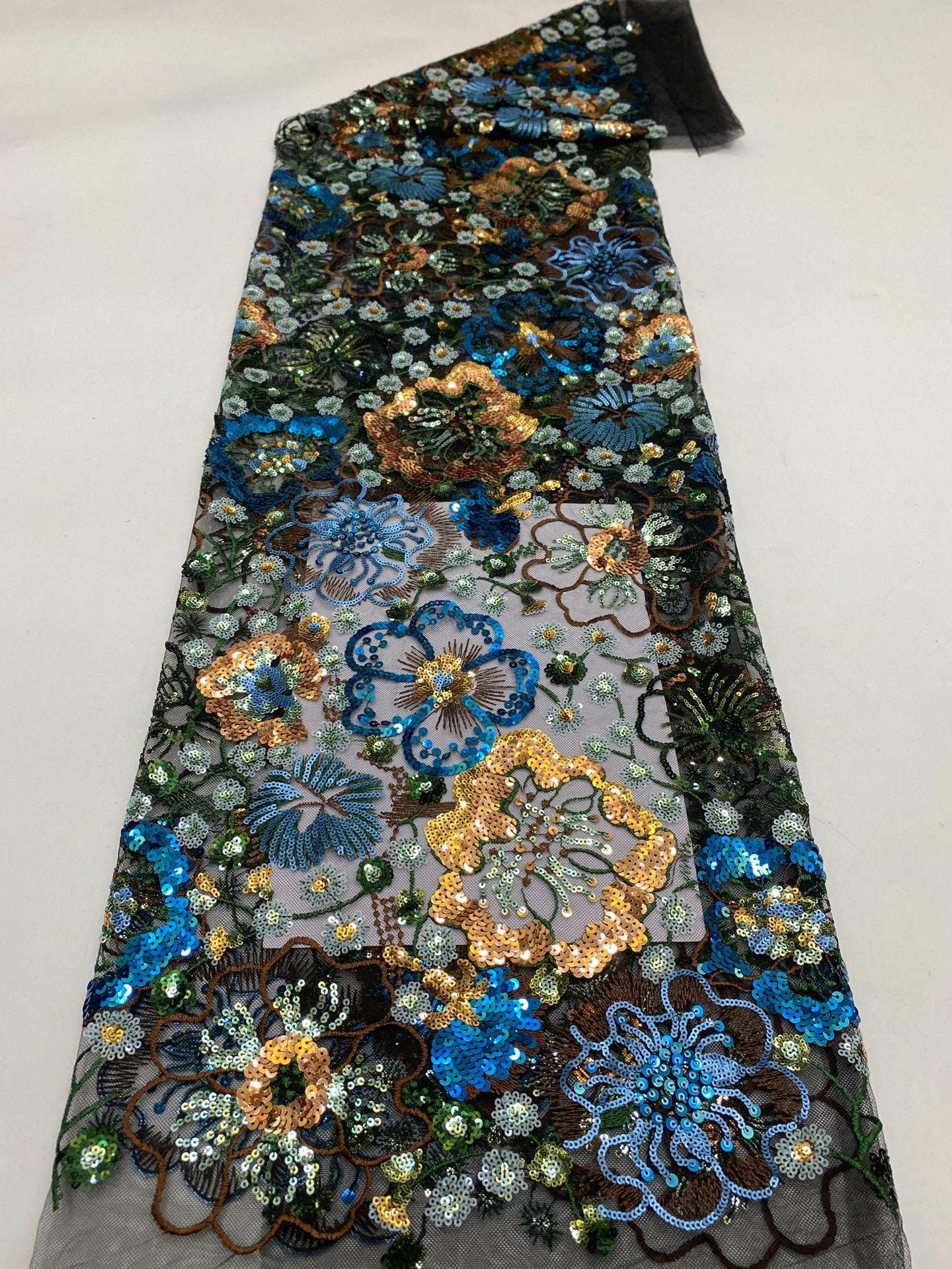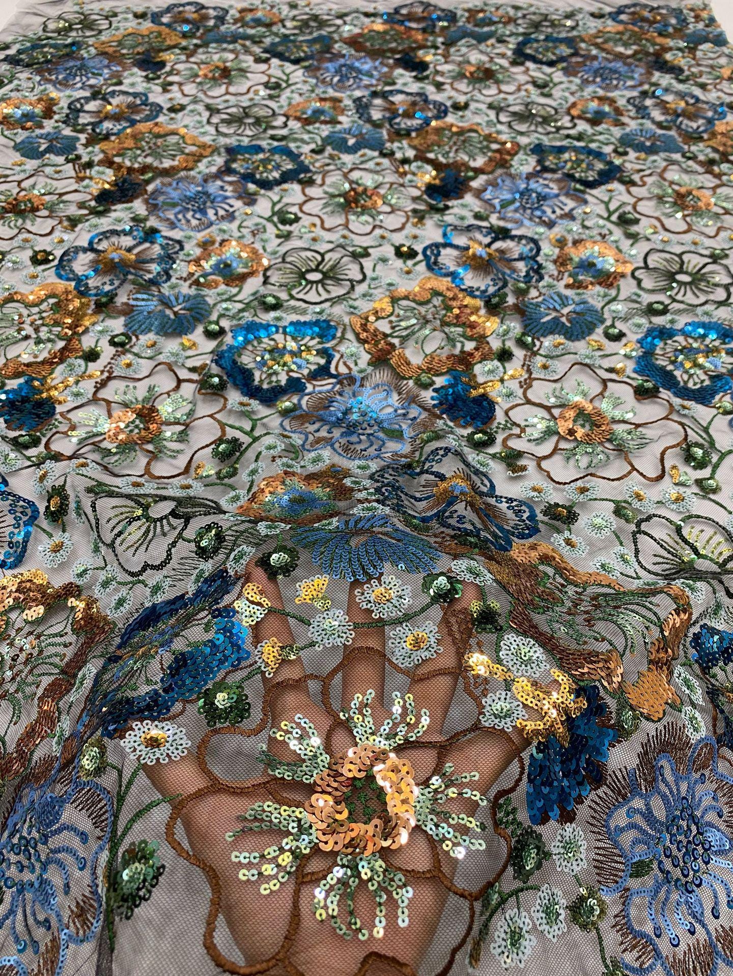 Sequin Embroidery Fabric: 50"W Floral Evening Dress Material