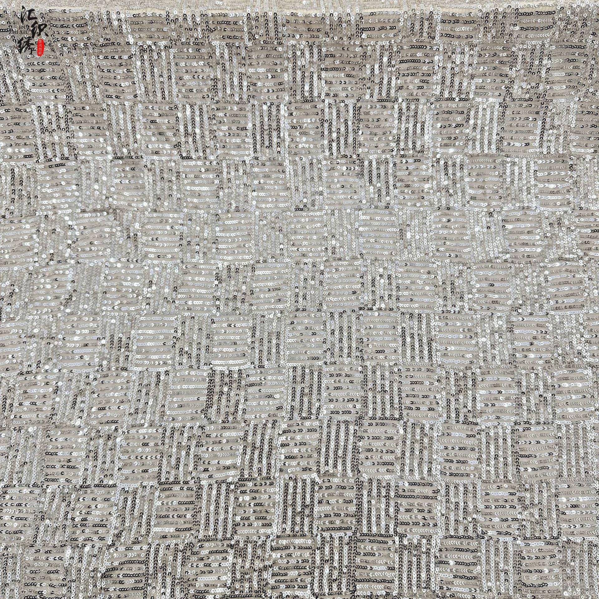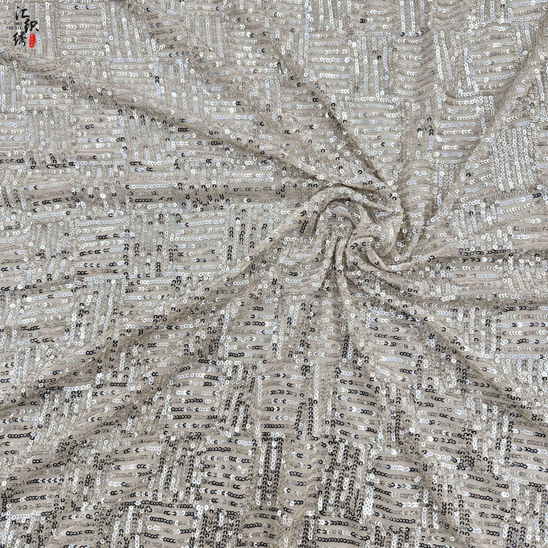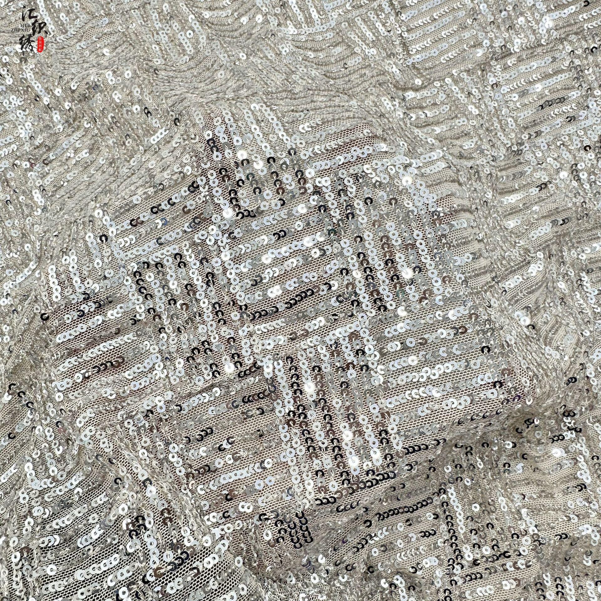 Sequin Lace Fabric: 3D Pleated Embroidery, 49" Wide, For Wedding & Prom