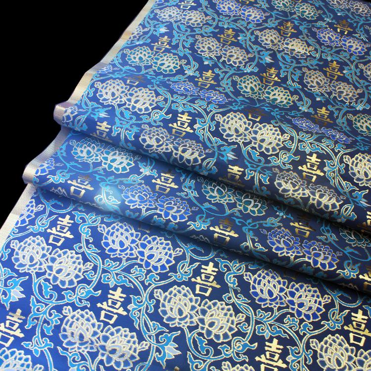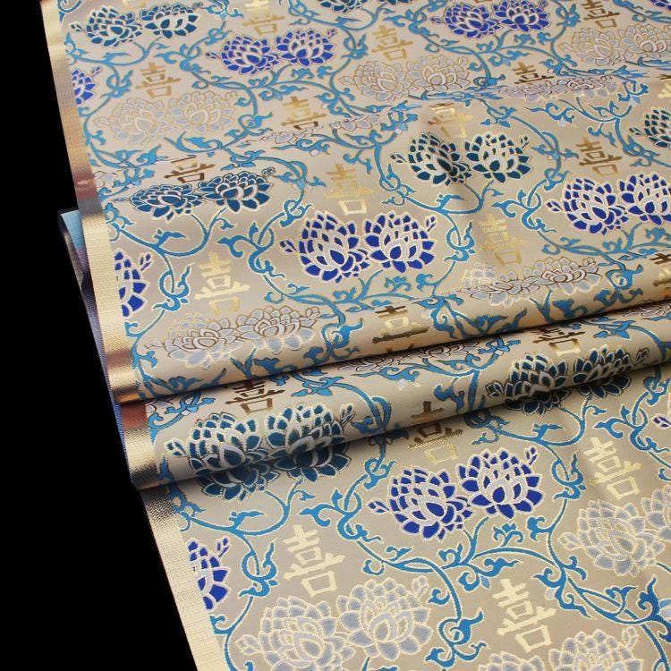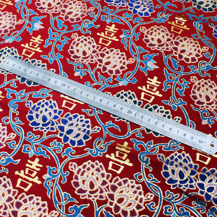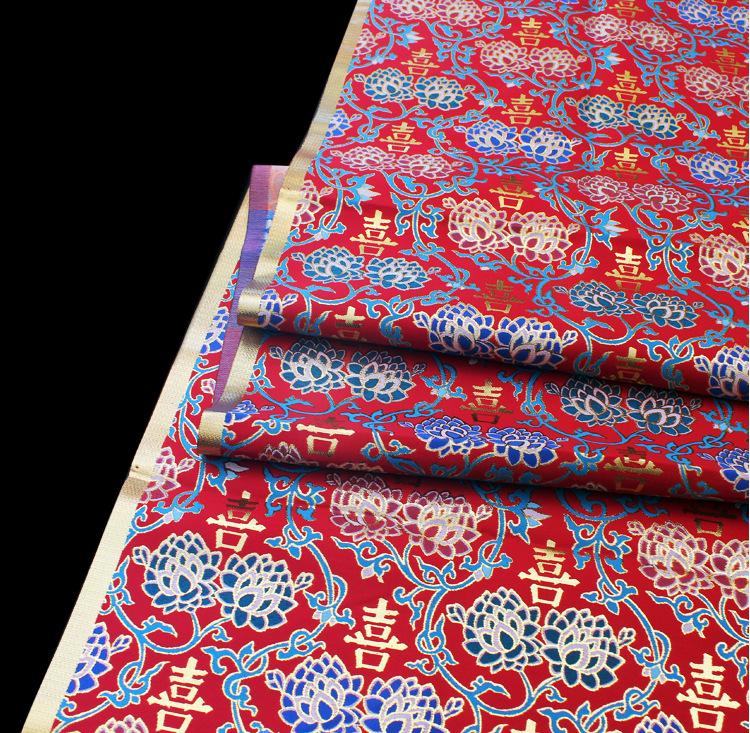 Silk Brocade Fabric: Chinese Wedding Cheongsam Qipao, Gold Embroidery (58"W)