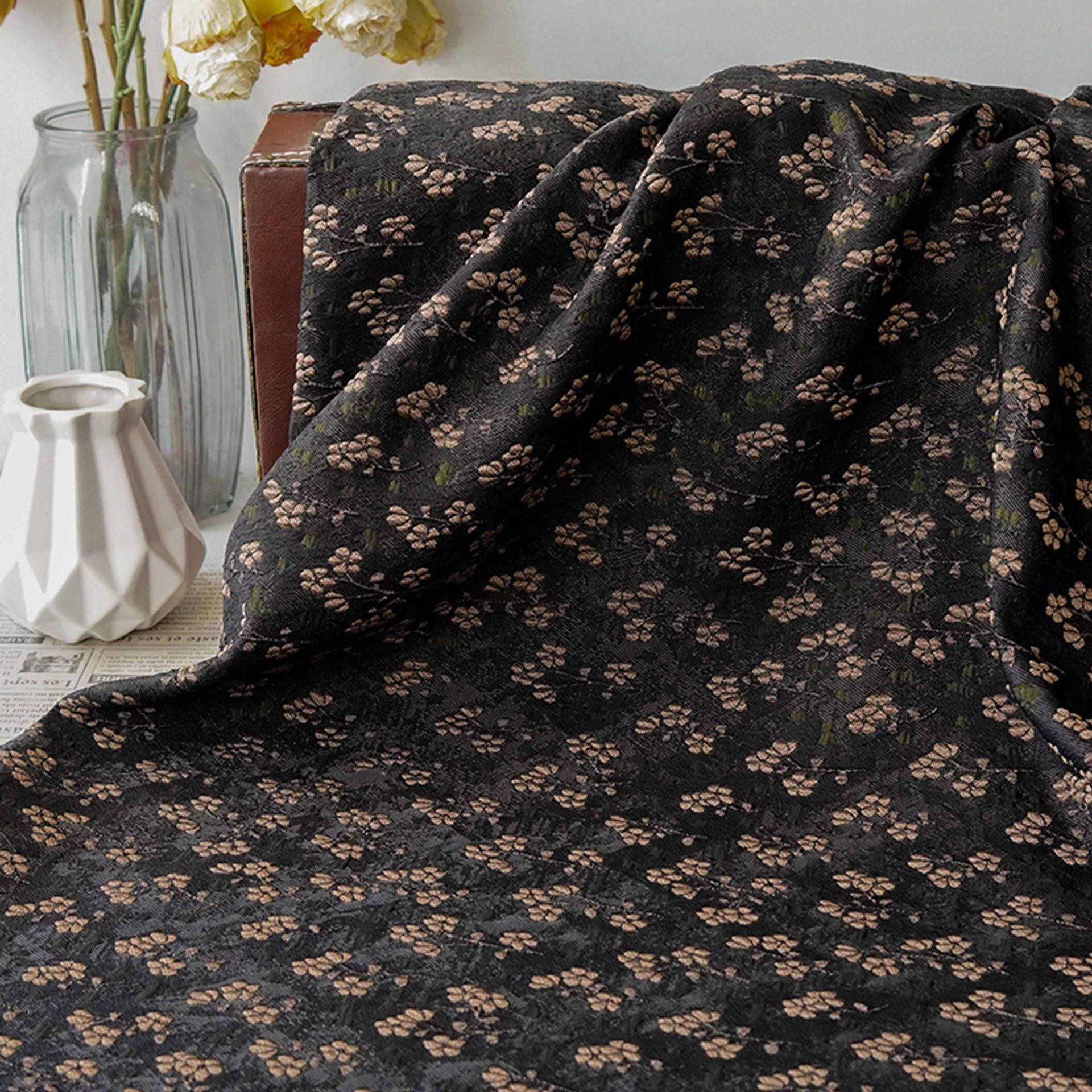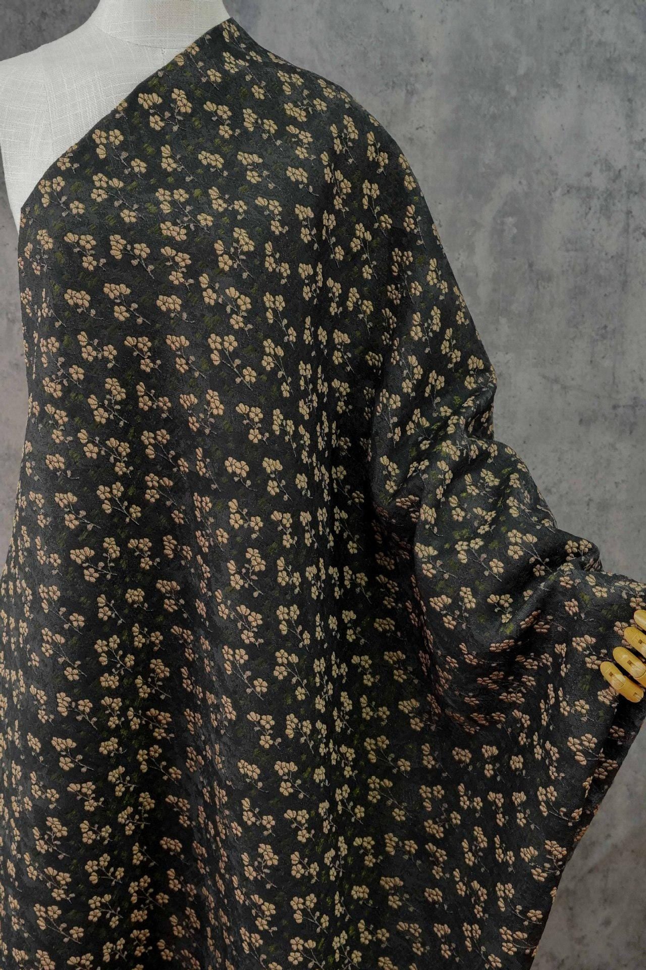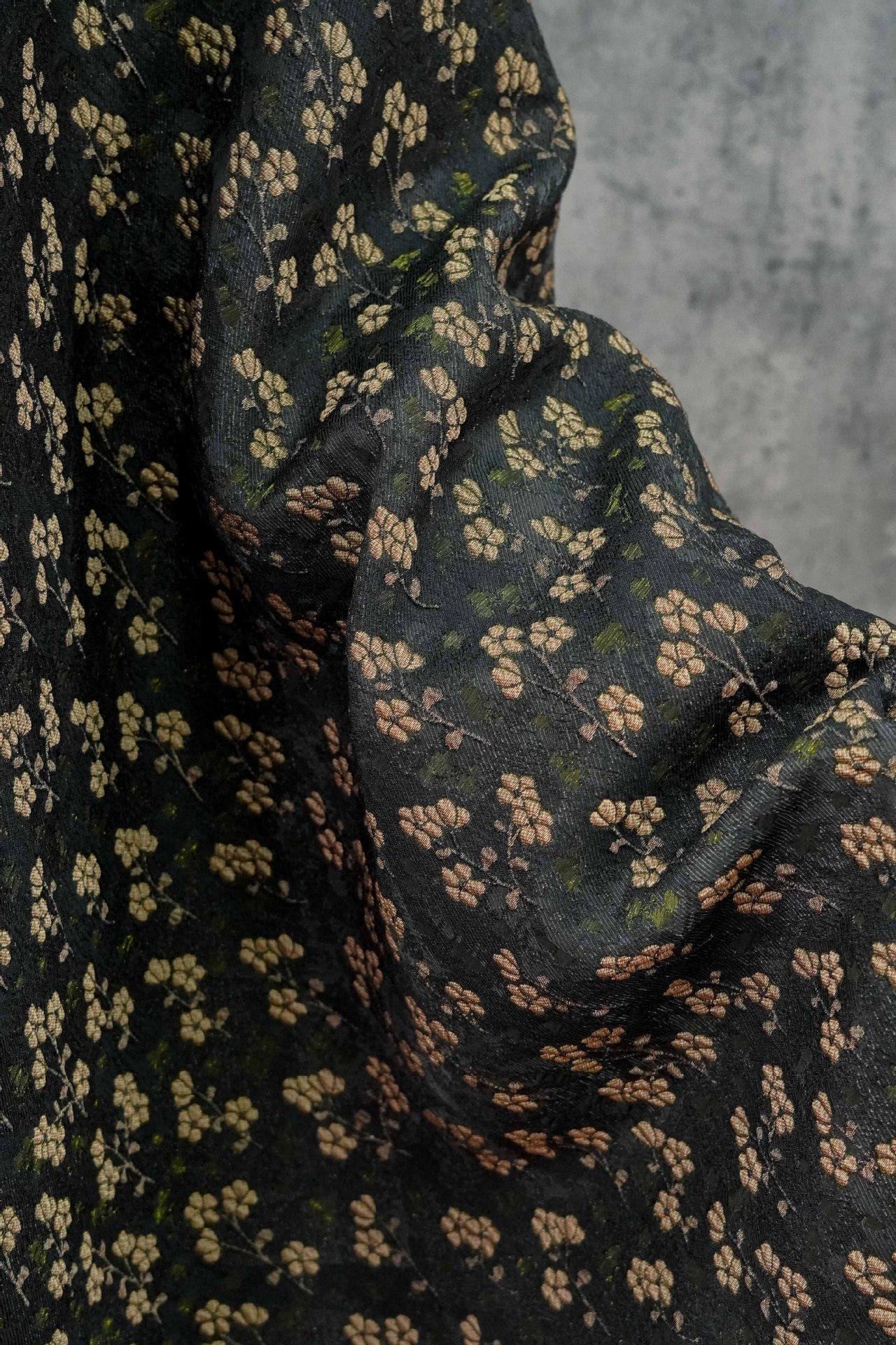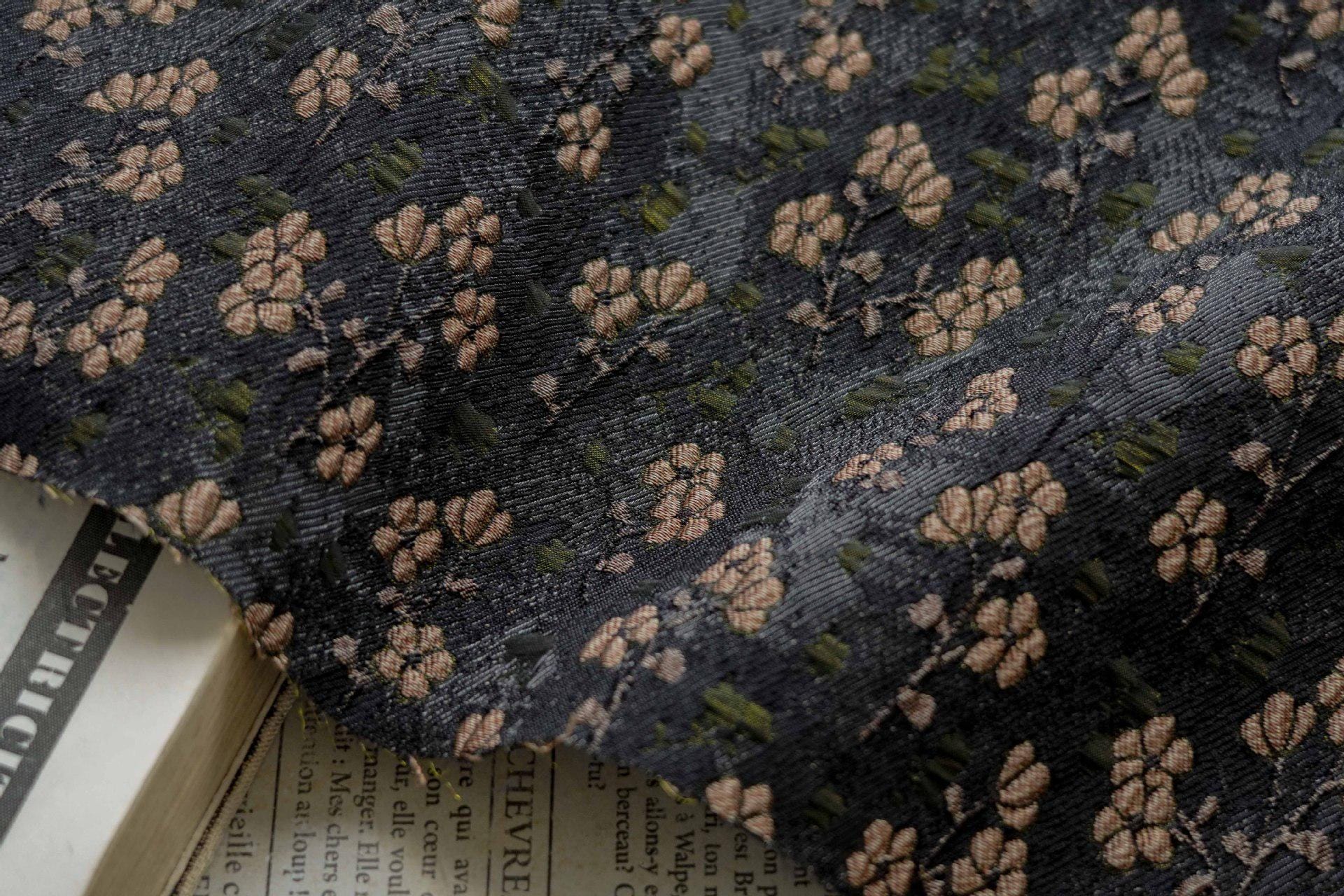 Vintage Jacquard Fabric with Black Base and Small Floral Pattern ��� Textured Brocade Cheongsam Materi"Wide