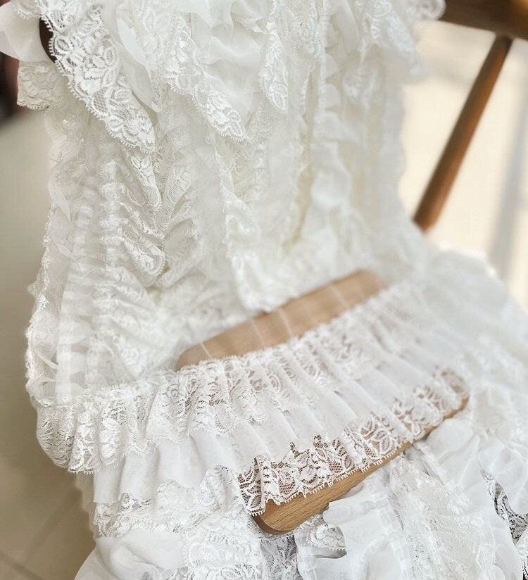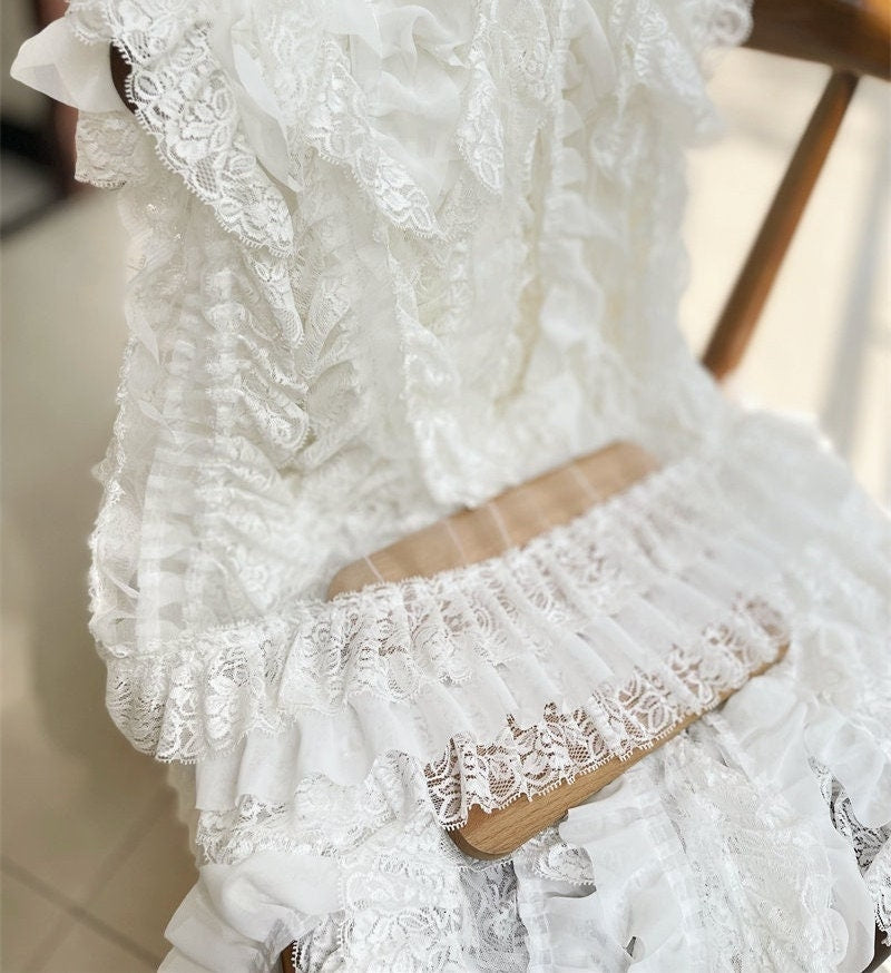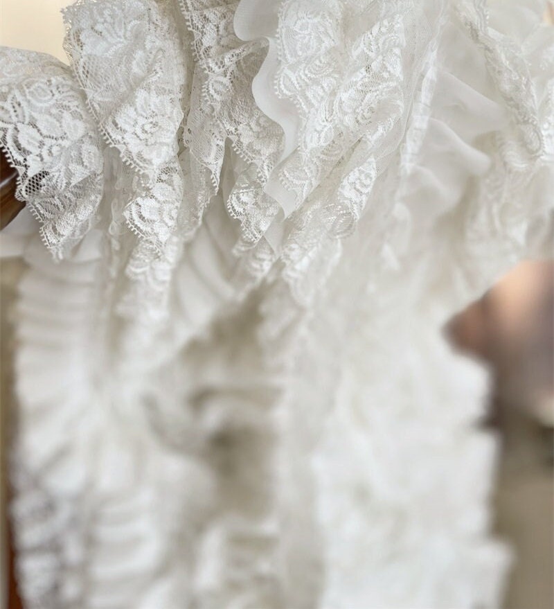 White Ruffled Lace Trim, Lolita Garment, Bridal, Doll Making (4.33"W)