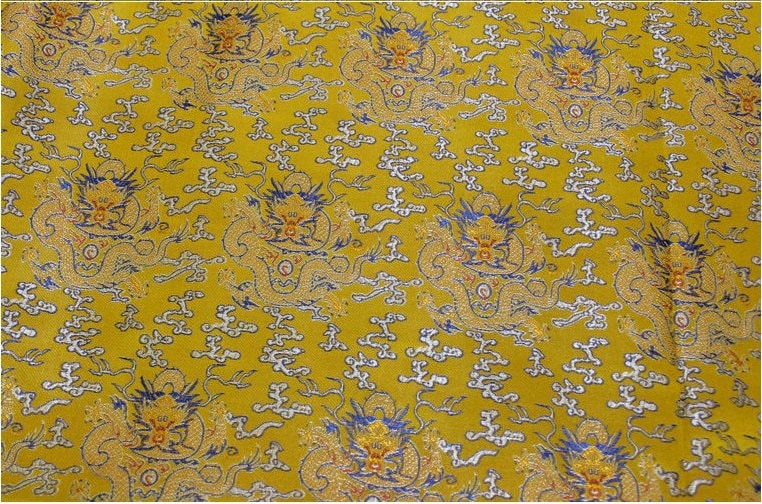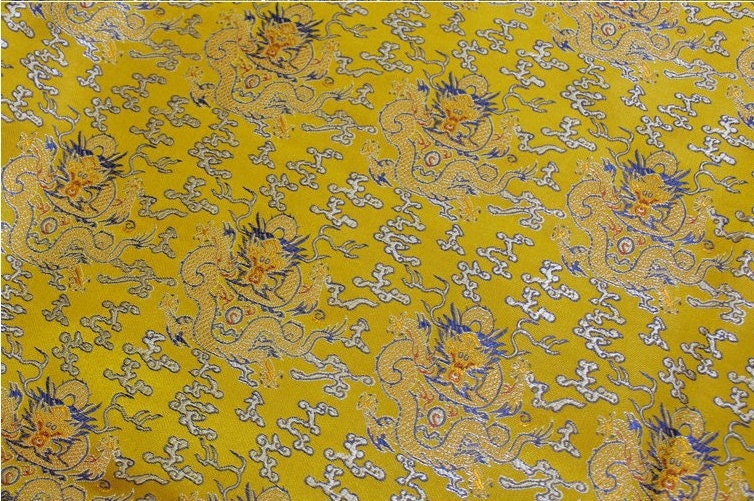Yellow Dragon Brocade Fabric: Chinese Silk Damask, Cheongsam Costume Decor