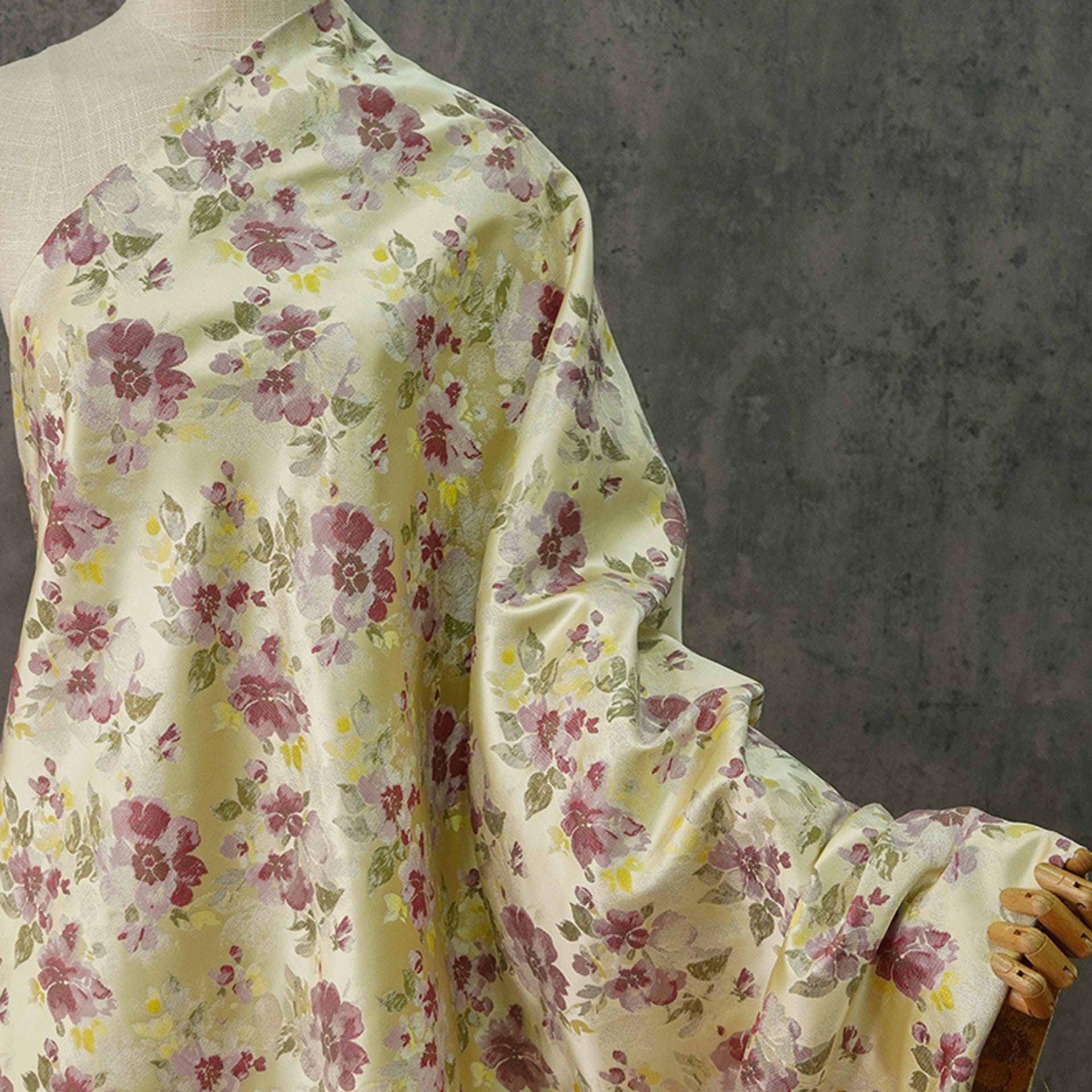 Yellow Jacquard Woven Fabric: 3D Embossed Flower Pattern, 57" Wide