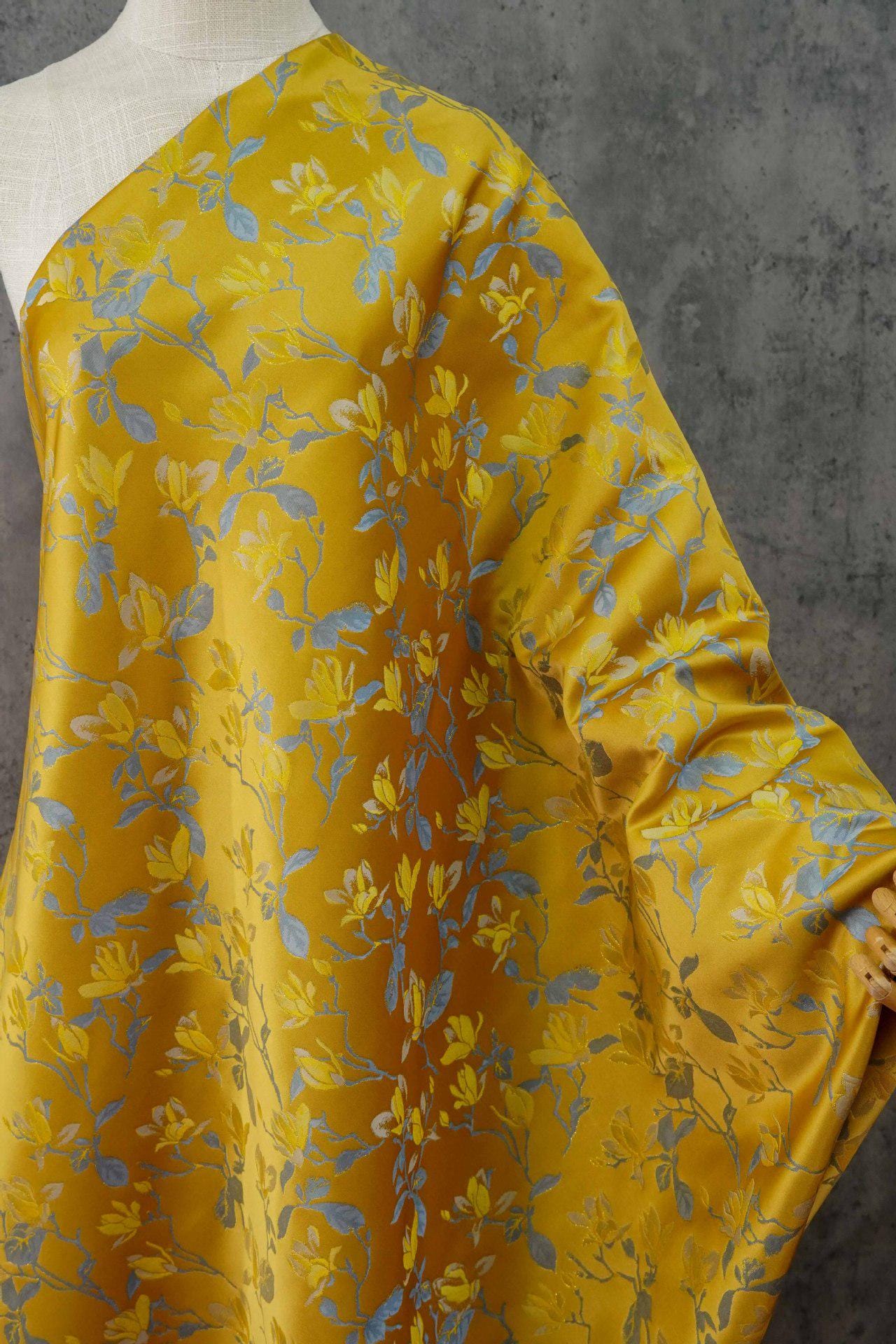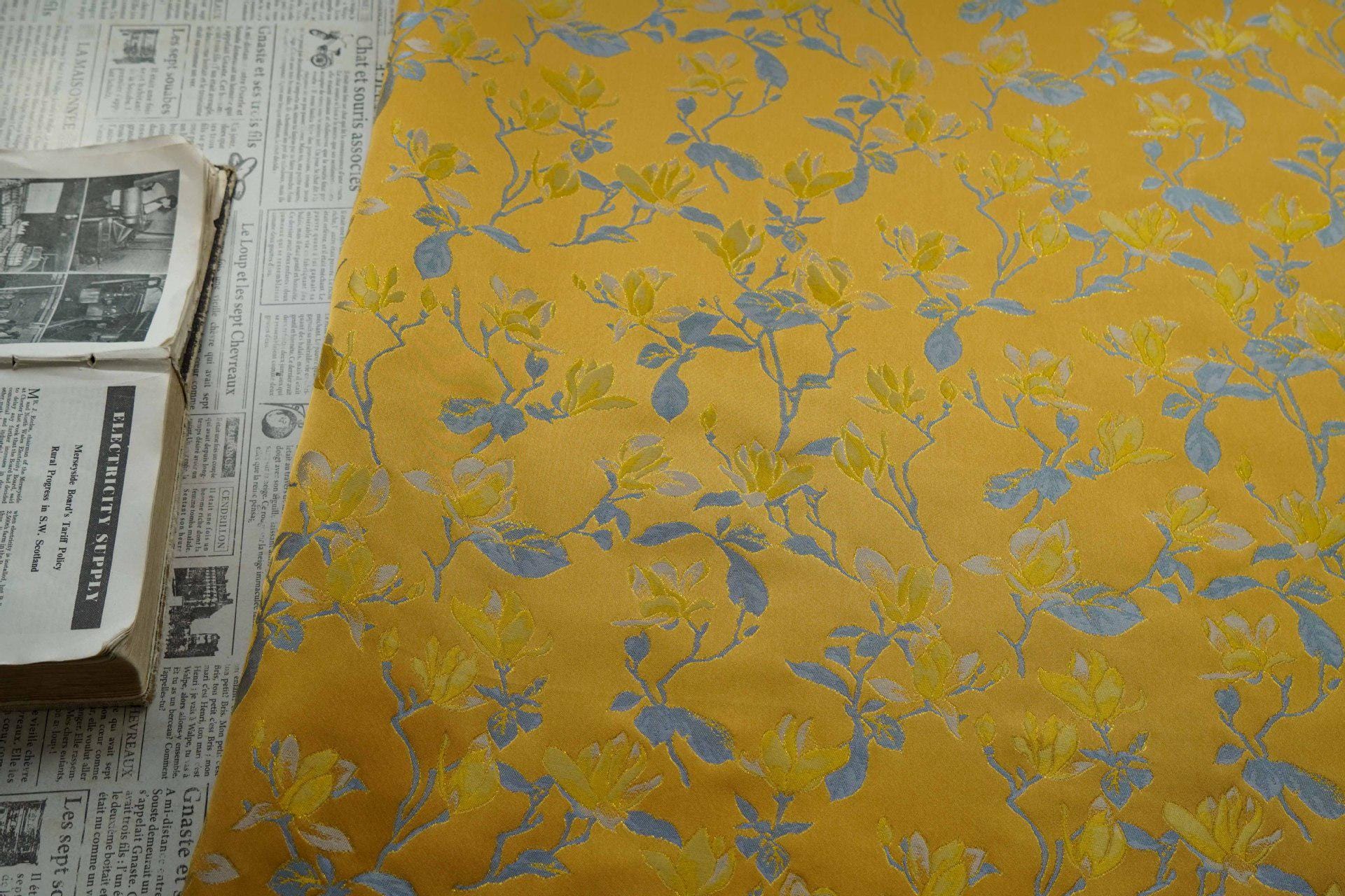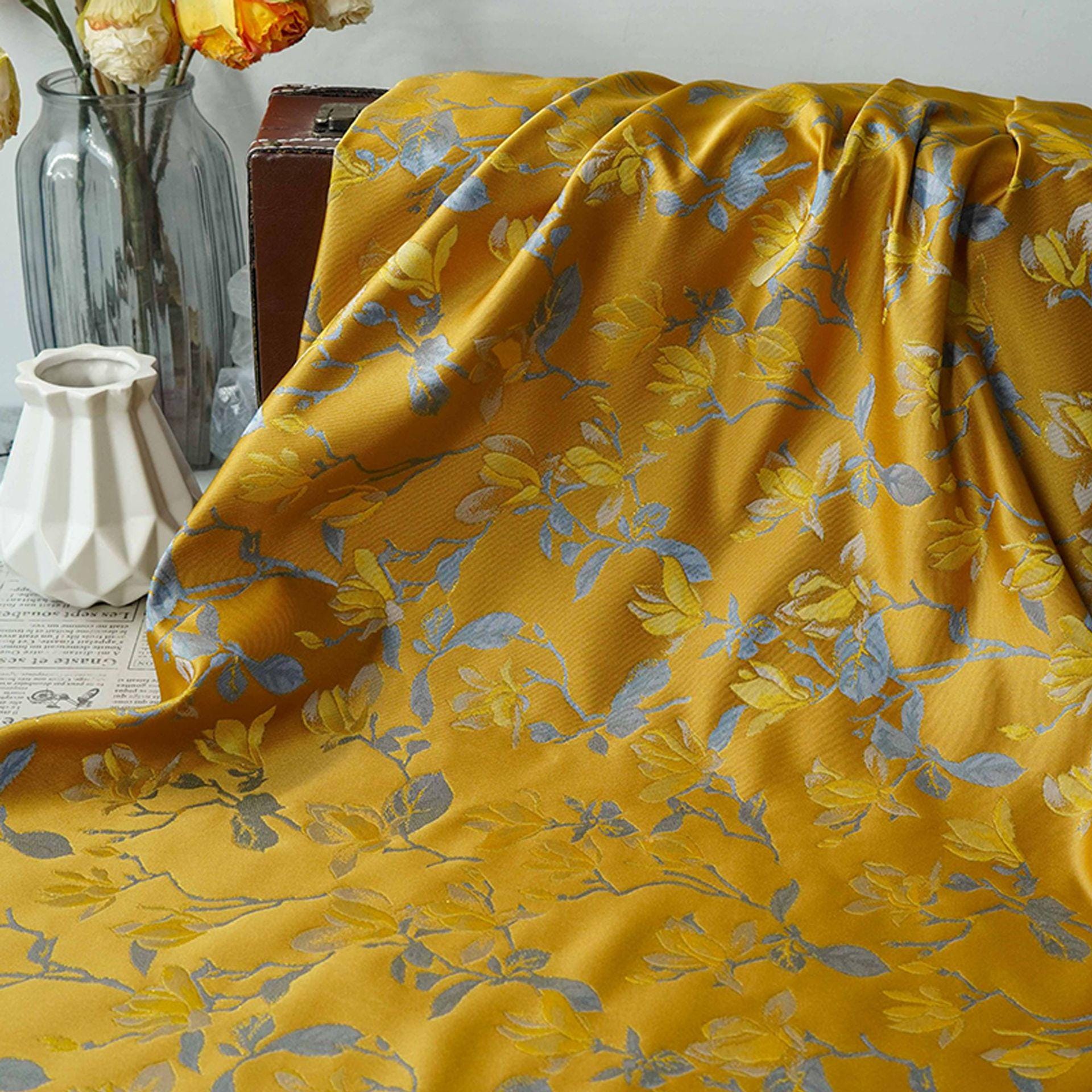 Yellow Magnolia Double-Sided Jacquard Upholstery Fabric ��� Elegant Home Decor Material by the Ya"Wide