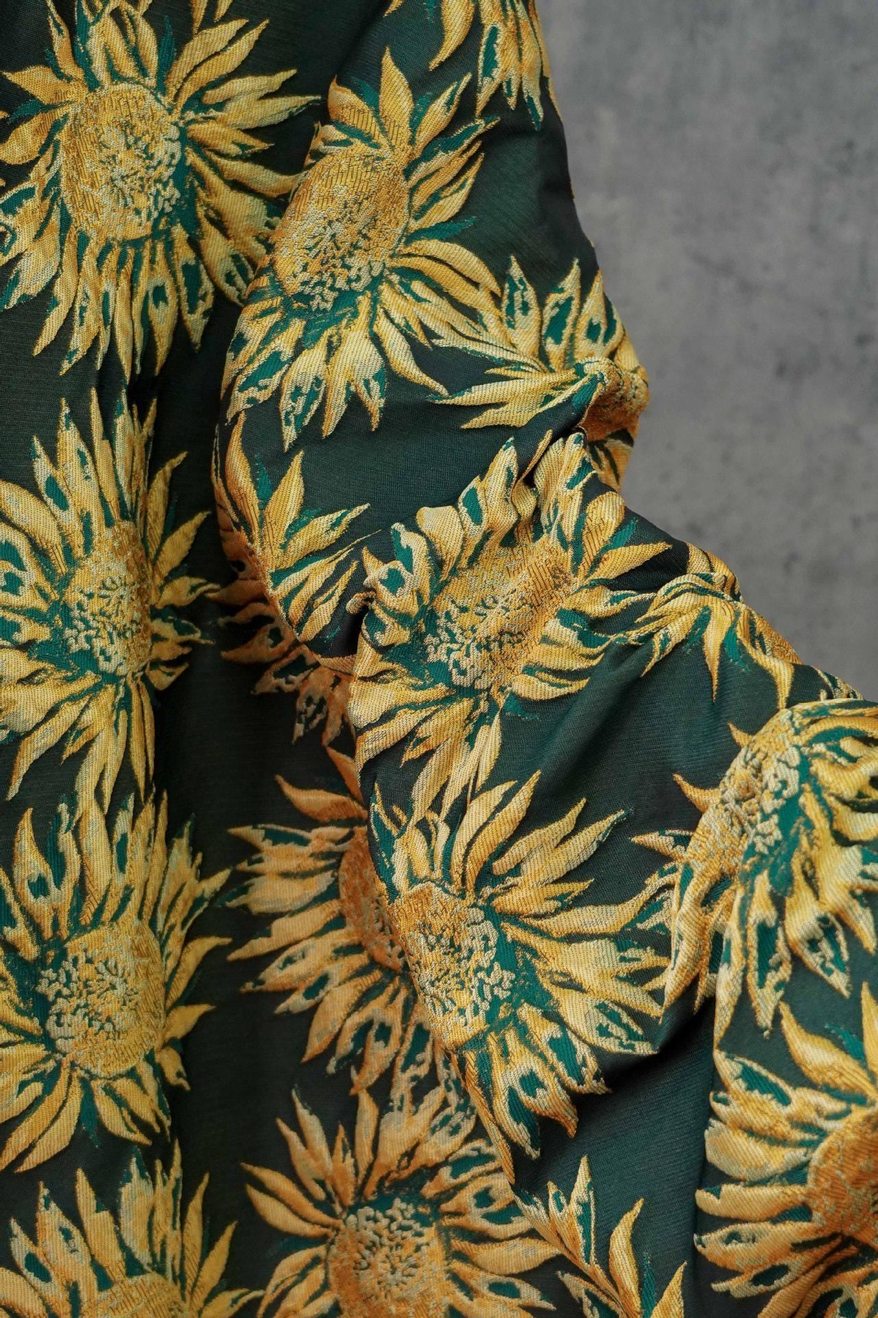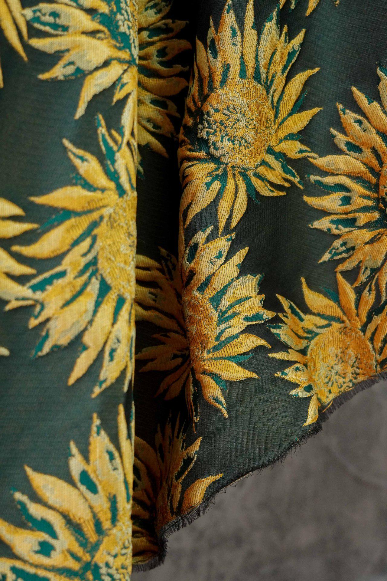 3D Embossed Sunflower Jacquard Fabric ��� Textured Woven Upholstery & Decorative Materi"Wide