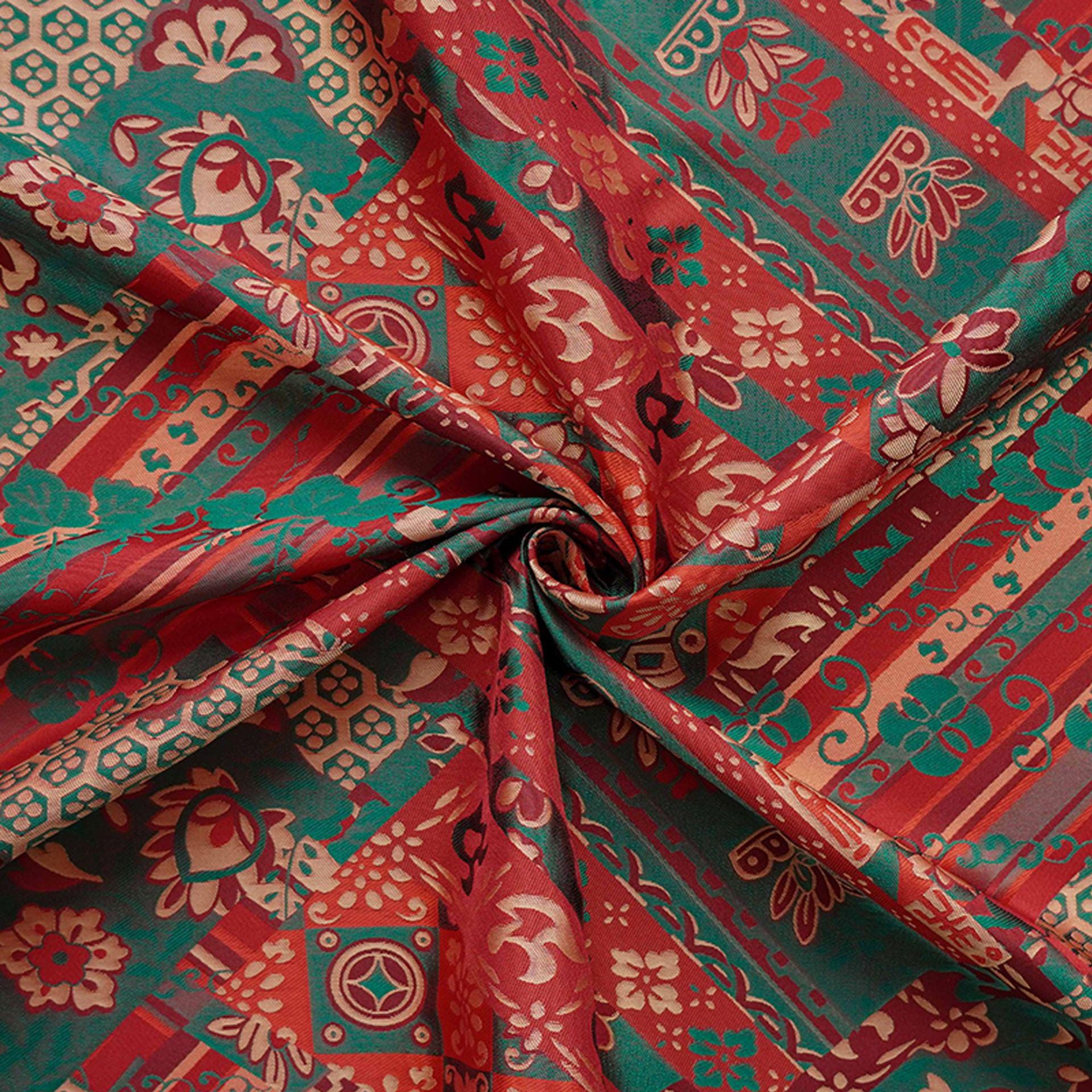 64"W Teal Jacquard Brocade Fabric ��� Longevity Peony Flower, High-Density Satin, Traditional Asian Textile for Quilting, Costumes, Home