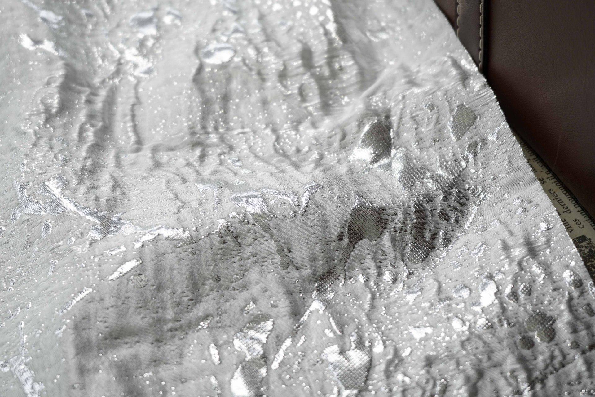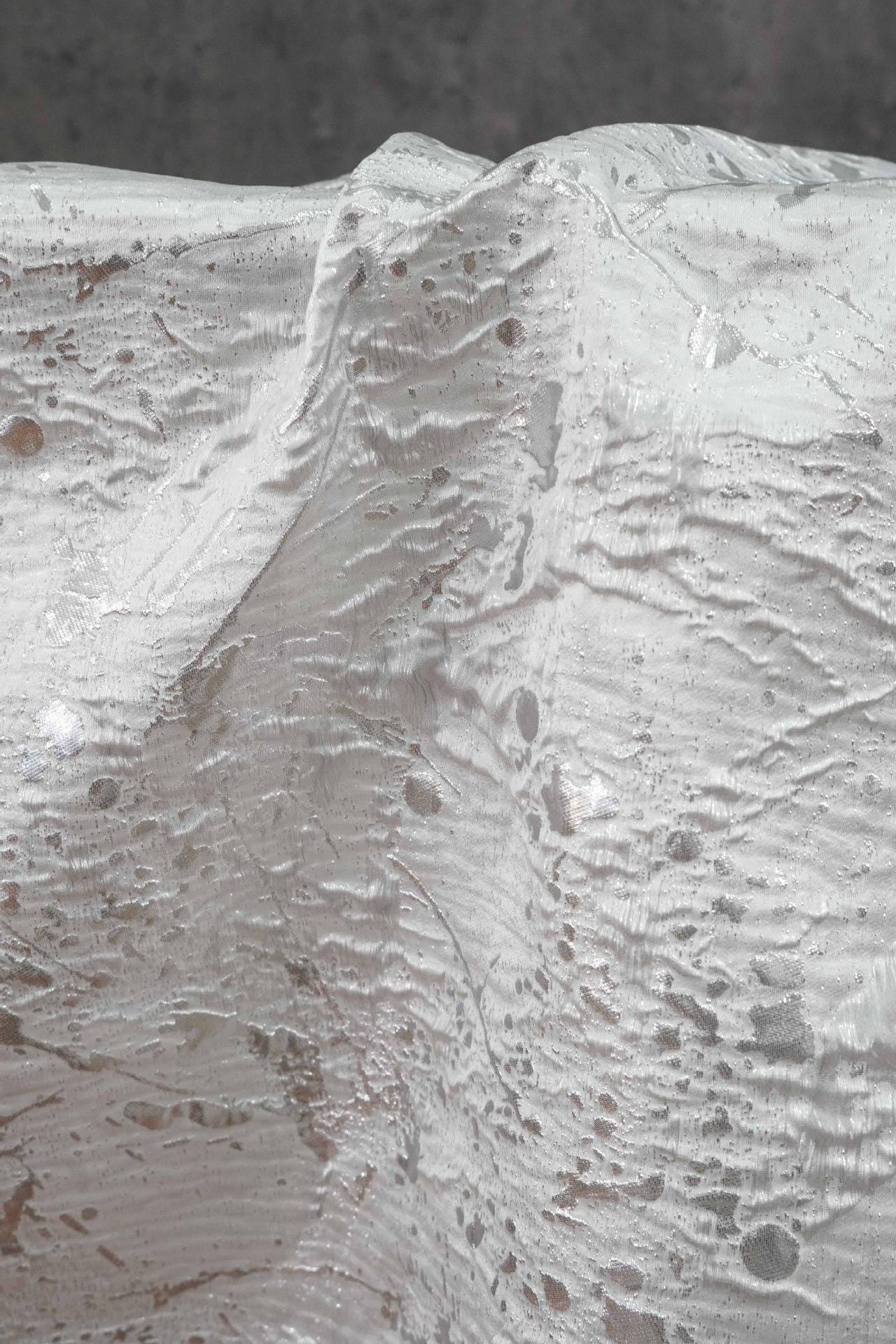 Abstract Splatter Jacquard Fabric: Silver White Embossed Upholstery Material (54" Wide)