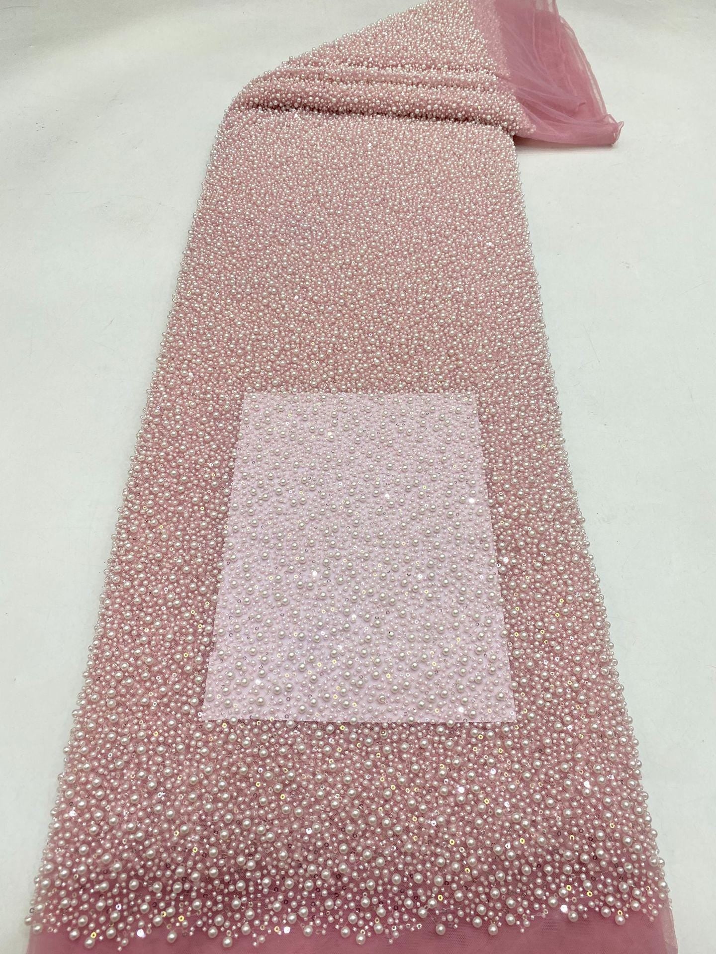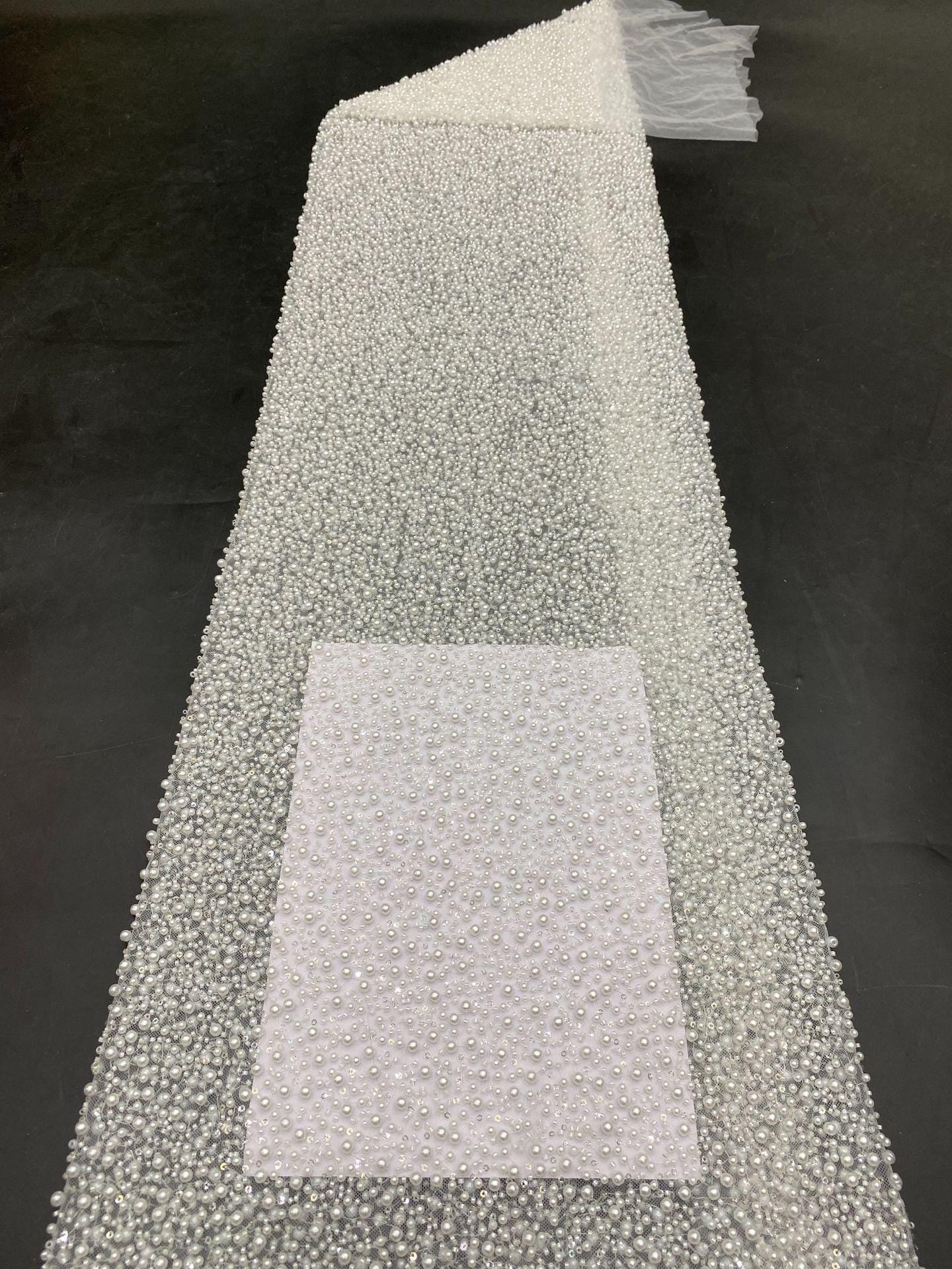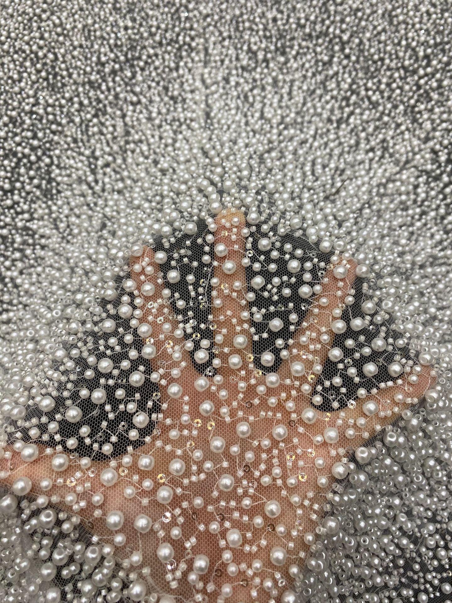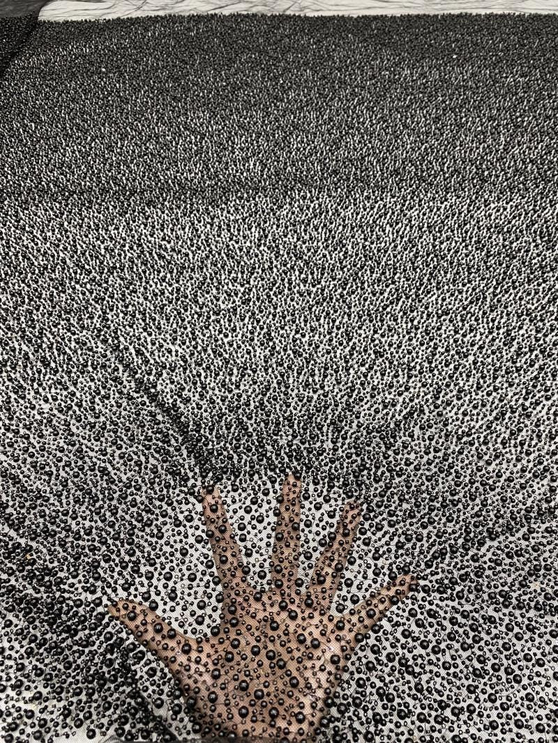 Add elegance and charm to your designs with this heavily embroidered floral beads lace fabric featuring exquisite flower appliqu�� details. This high-quality fabric is perfect for creating stunning, eye-catching pieces.