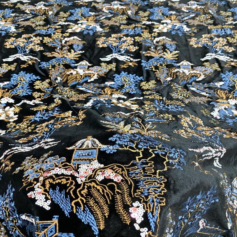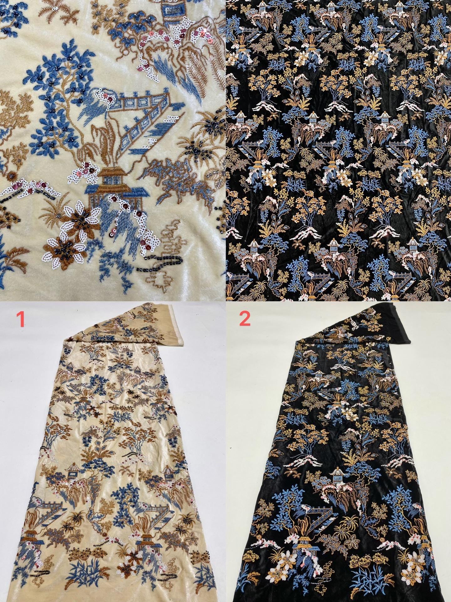 Beaded Sequin Embroidery Fabric with Velvet Base ��� DIY Dressmaking, Gowns, Costum"Wide