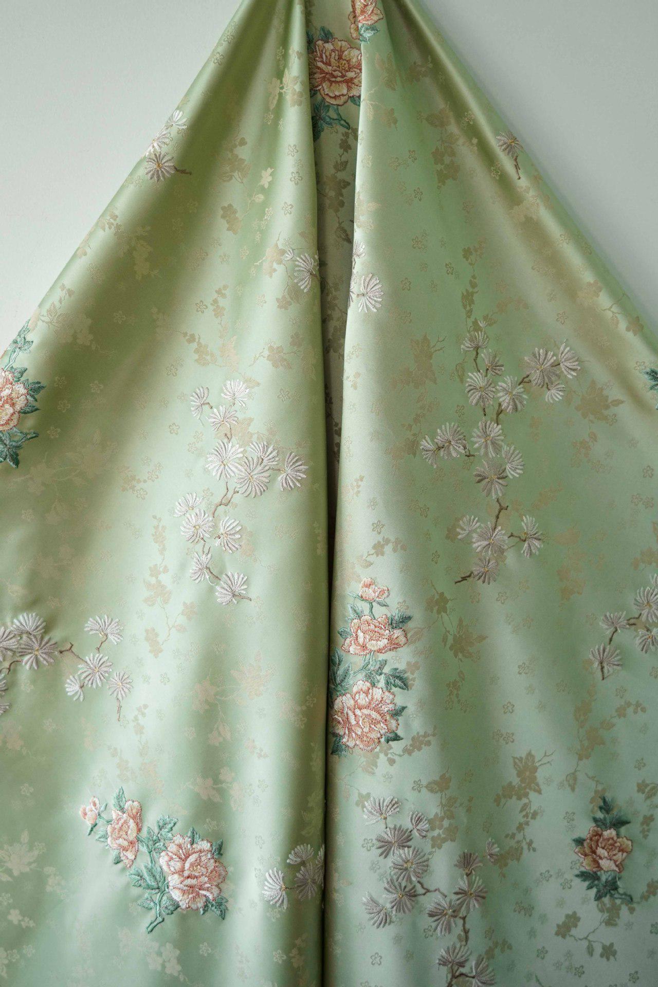 Care instructions: we suggest to do hand-washing, always use cool water and a mild detergent. Never scrub vigorously, wring or twist the garment. Extra care should be taken when laundering the fabric to prevent snagging and to protect the long floating threads that form the design and give brocade its lovely finish from breakage.