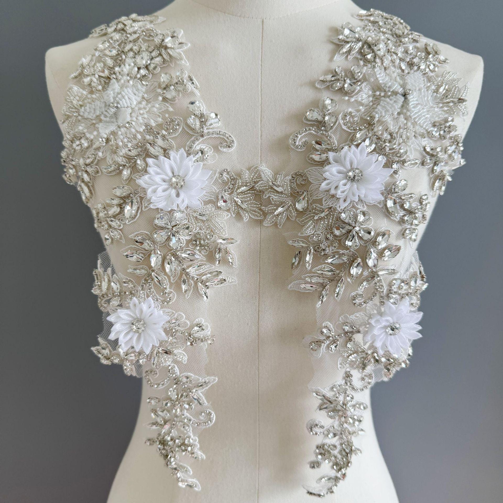Hand Beaded Rhinestone Applique Patch: Bridal Lace Embroidery