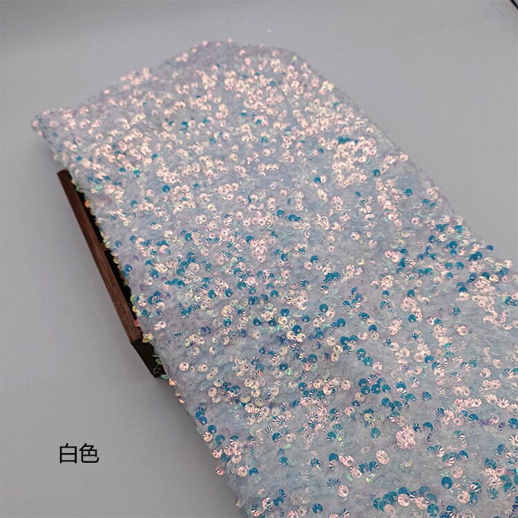 Iridescent Sequin Fabric: 3D Embroidery Shell Flannelette, 49" Wide