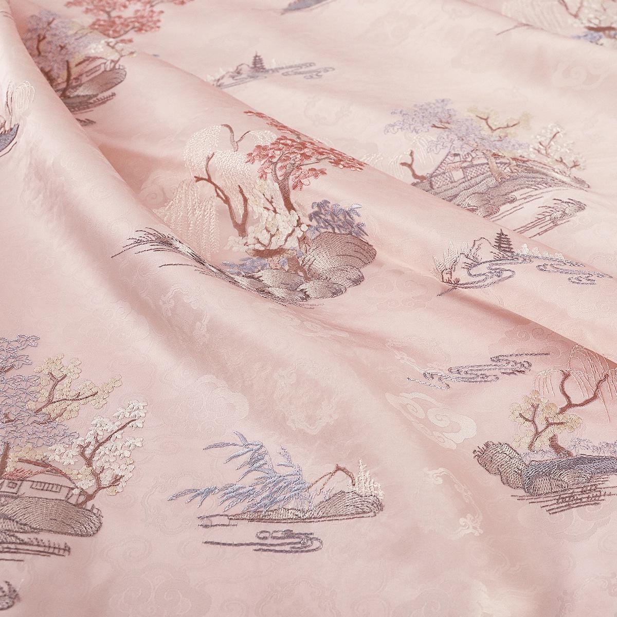 Light Pink Damask Fabric: 59���W Embroidery Flower Ma