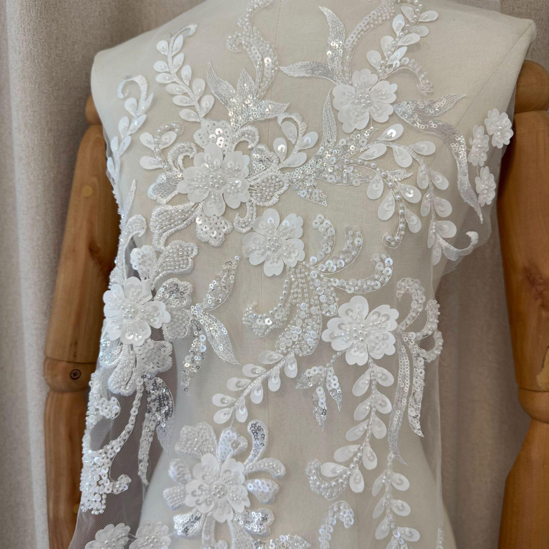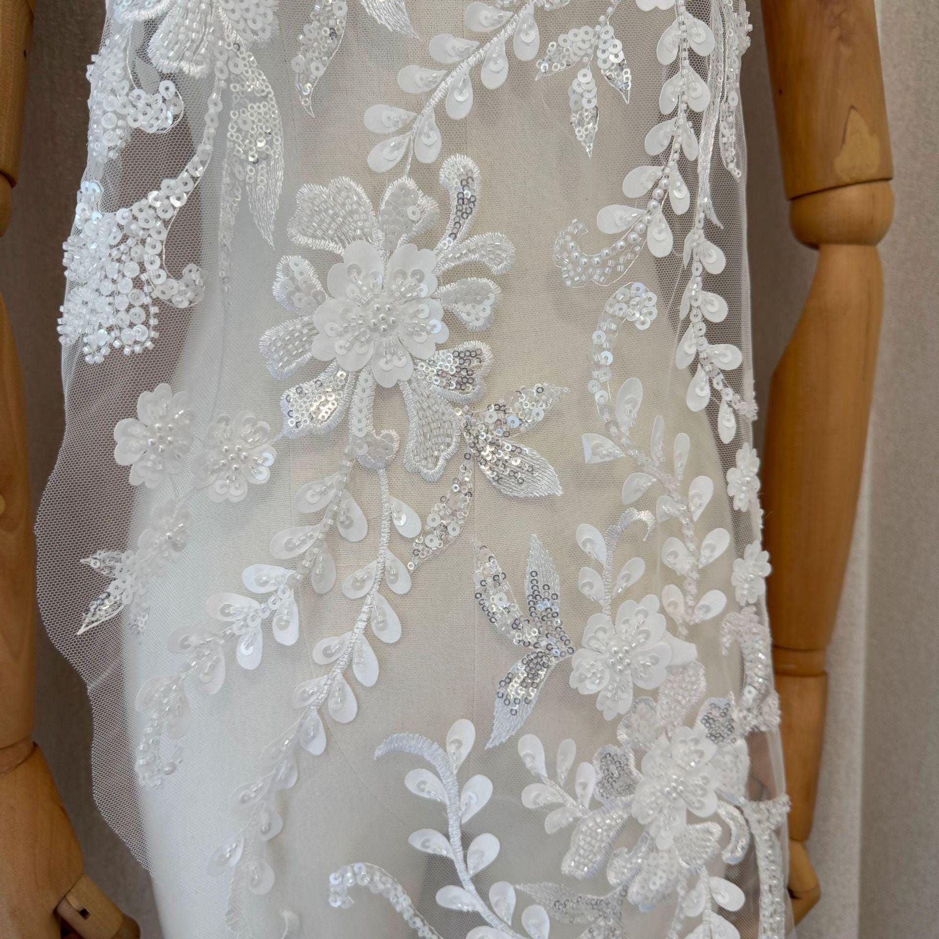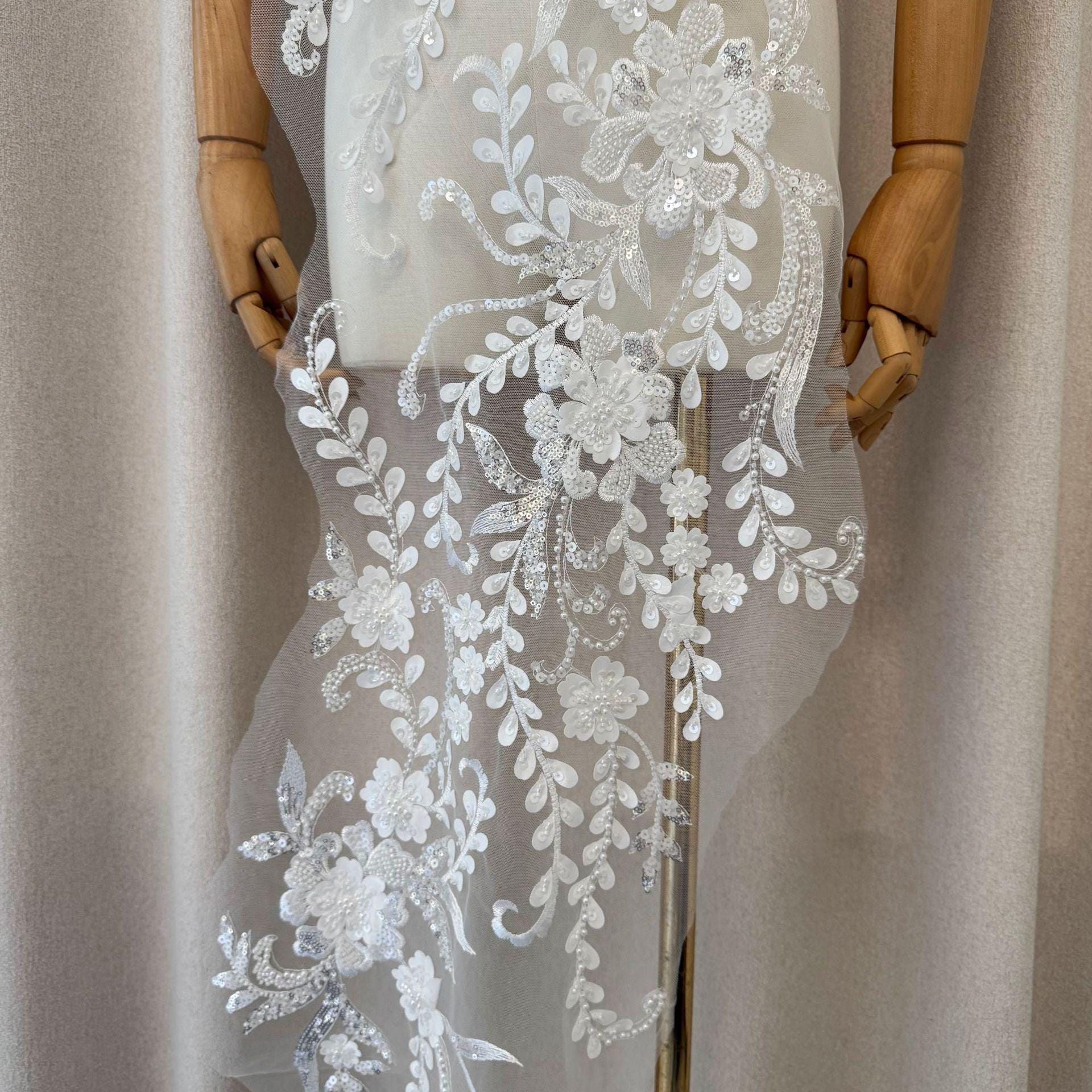 Luxury Sequin & Beaded Embroidery Fabric ��� Bridal Gown Panel for Wedding Dress